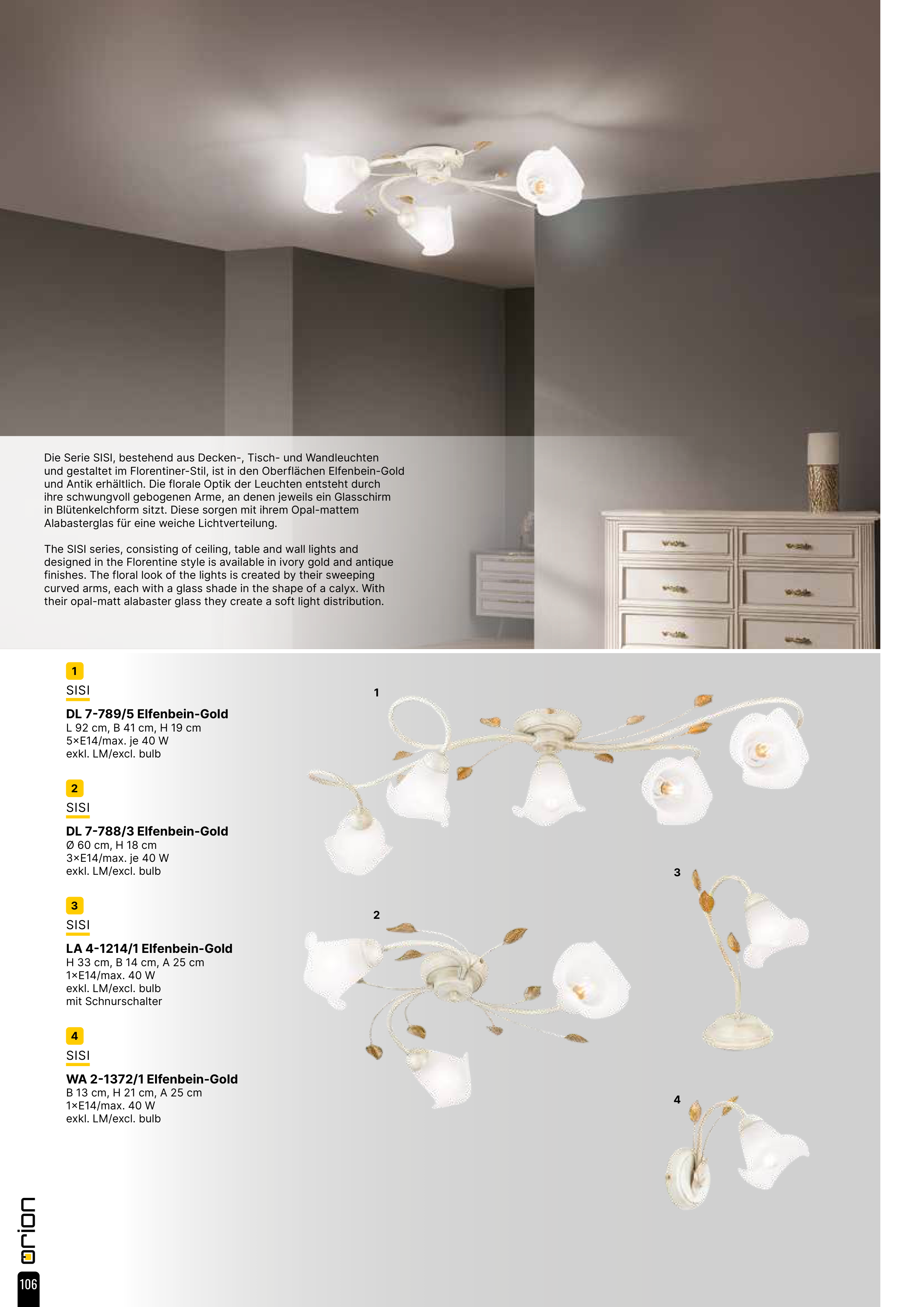 Die Serie SISI, bestehend aus Decken-, Tisch- und Wandleuchten
