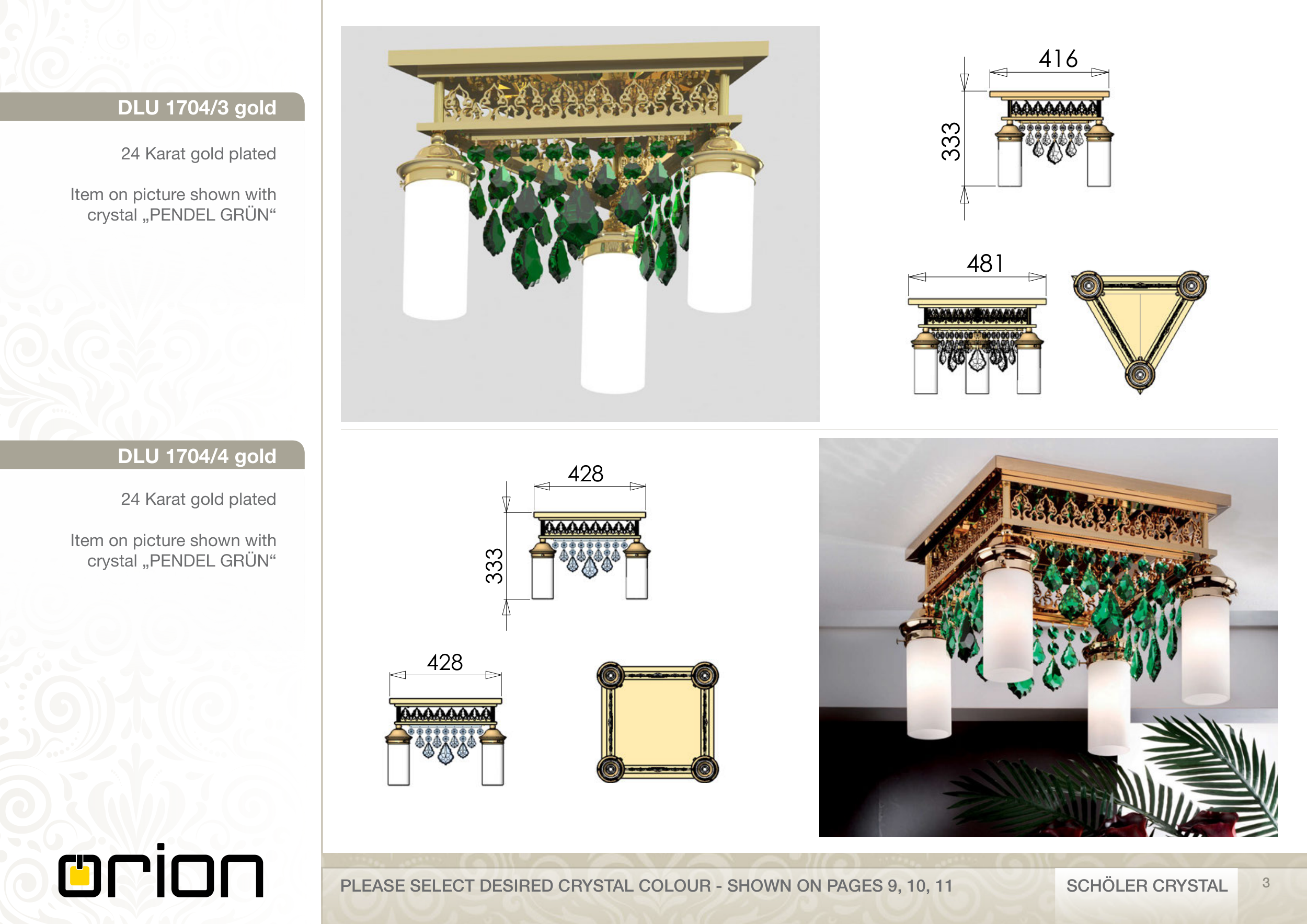 PLEASE SELECT DESIRED CRYSTAL COLOUR - SHOWN ON PAGES 9, 10, 11