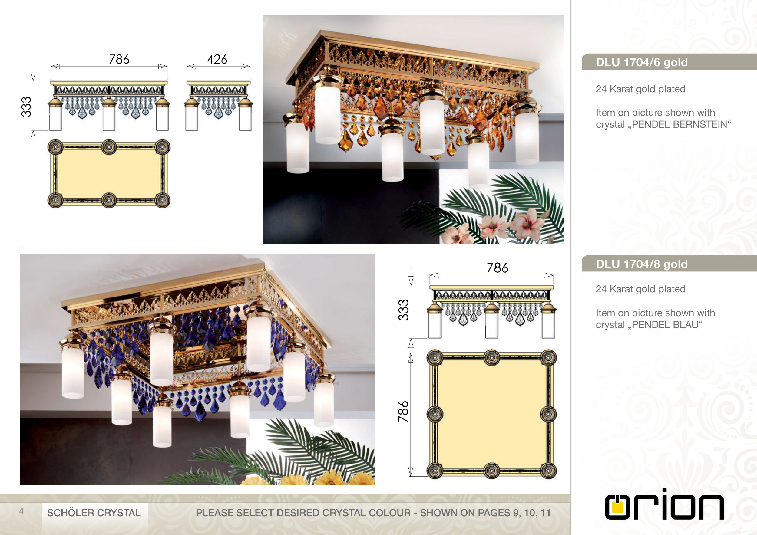 PLEASE SELECT DESIRED CRYSTAL COLOUR - SHOWN ON PAGES 9, 10, 11