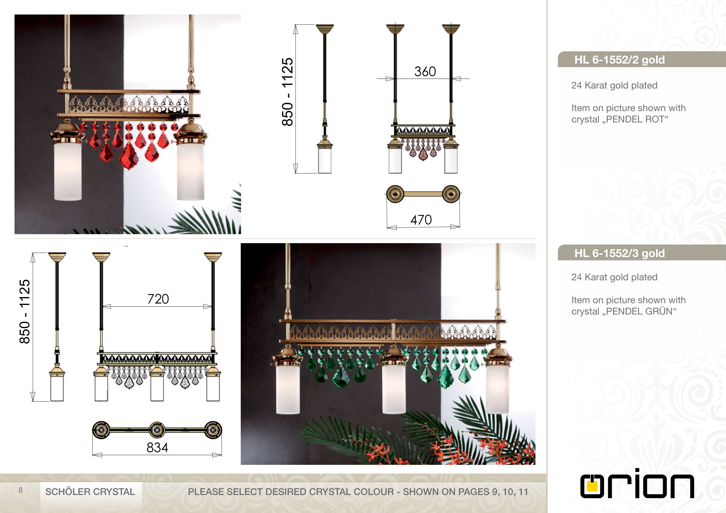 PLEASE SELECT DESIRED CRYSTAL COLOUR - SHOWN ON PAGES 9, 10, 11