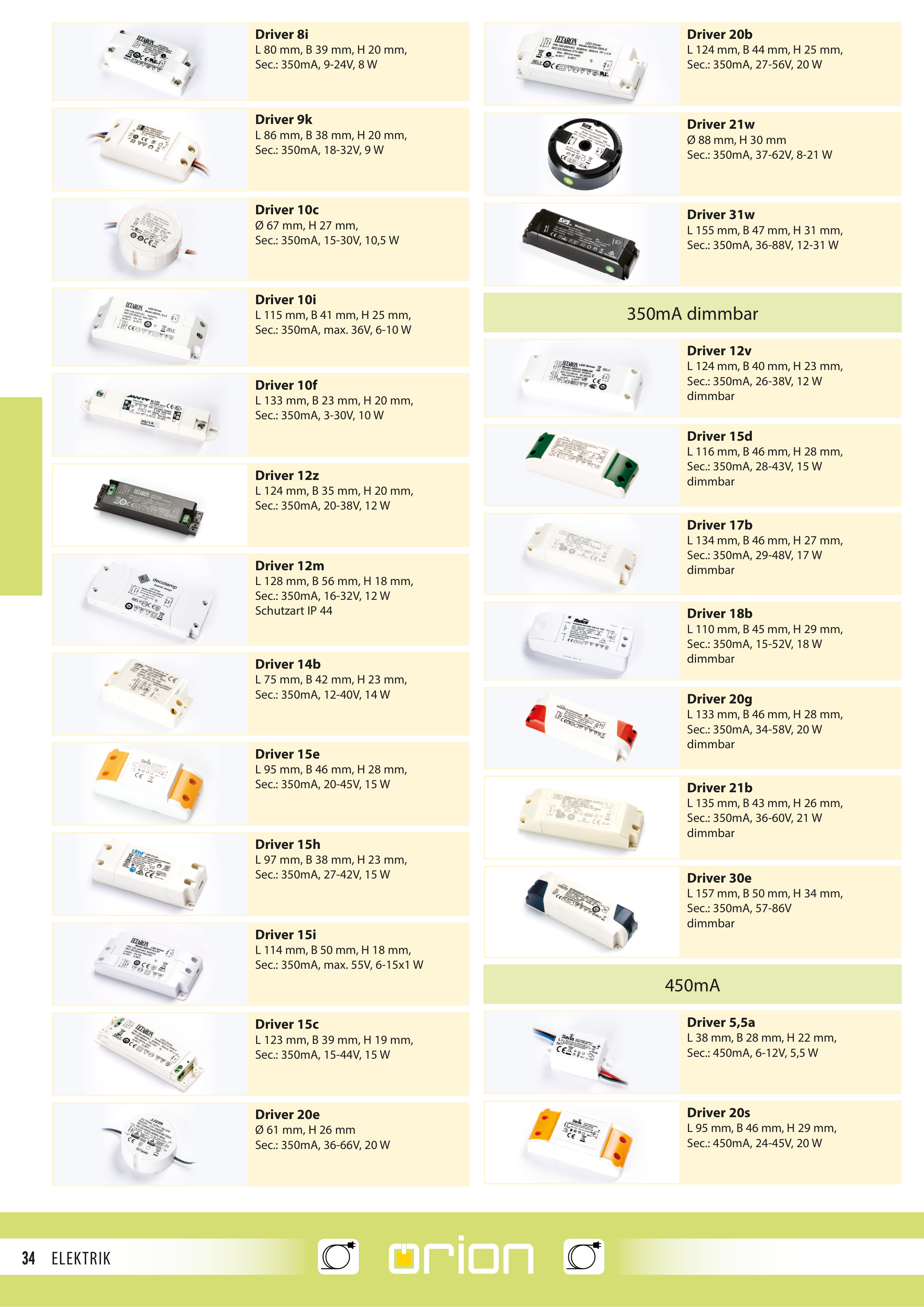 Sec.: 350mA, 34-58V, 20 W