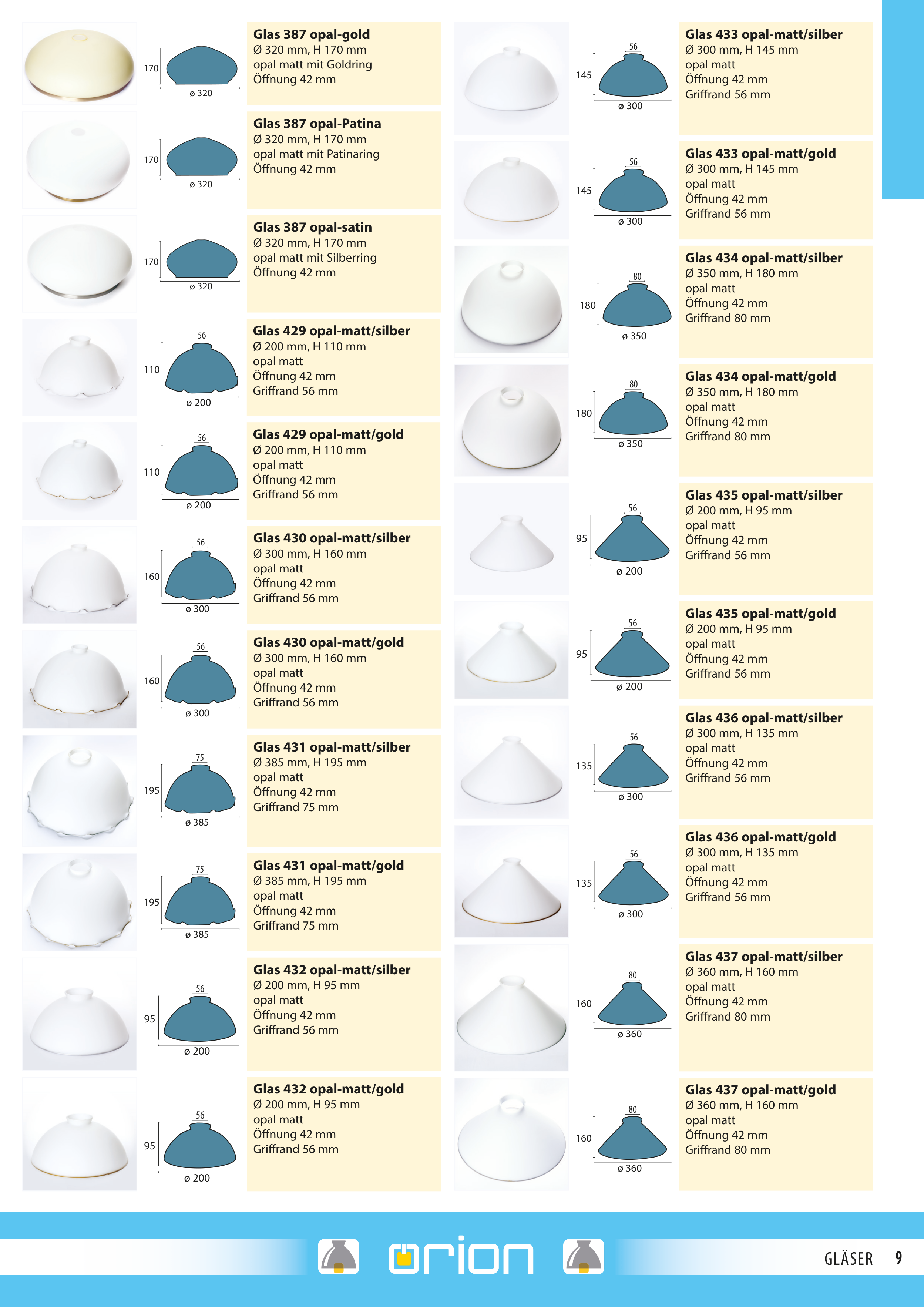 Glas 430 opal-matt/gold