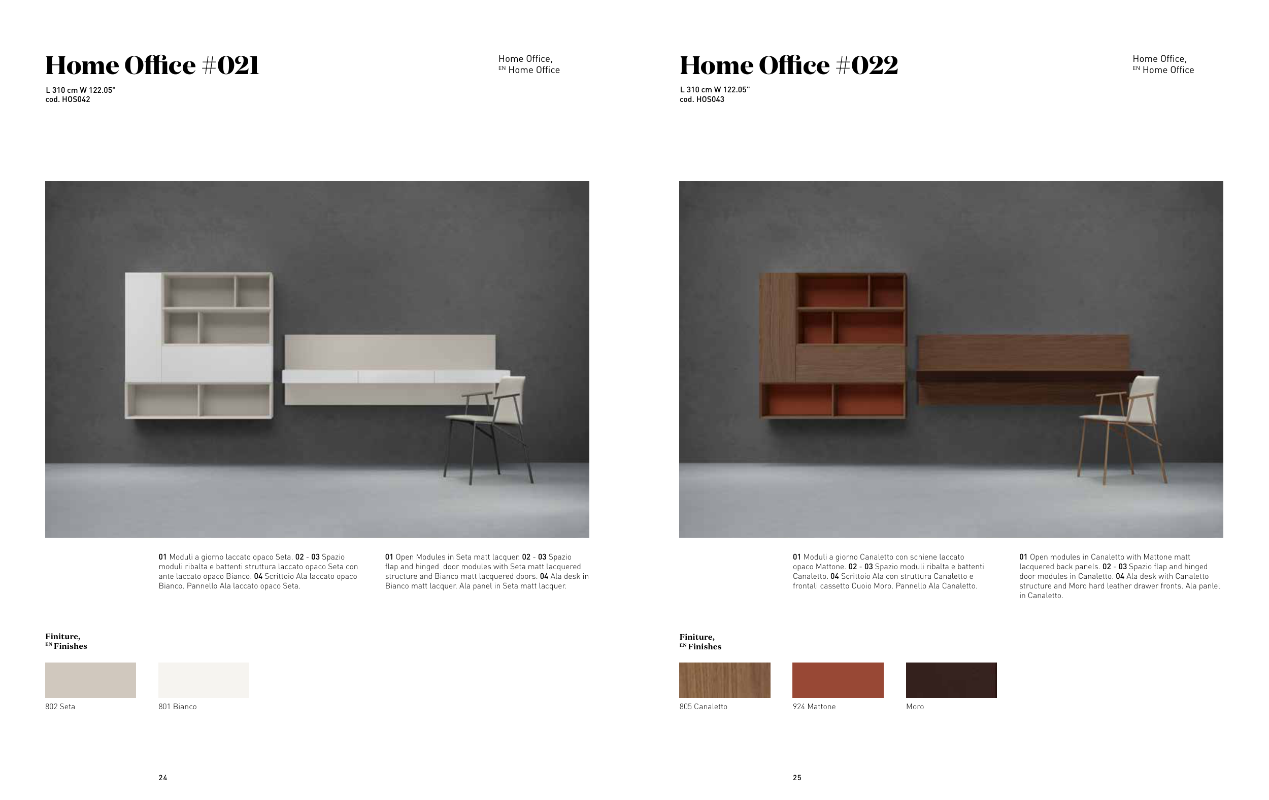 01 Open Modules in Seta matt lacquer. 02 - 03 Spazio
