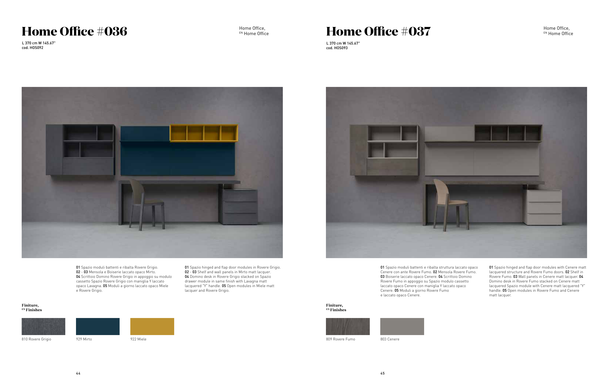 03 Boiserie laccato opaco Cenere. 04 Scrittoio Domino