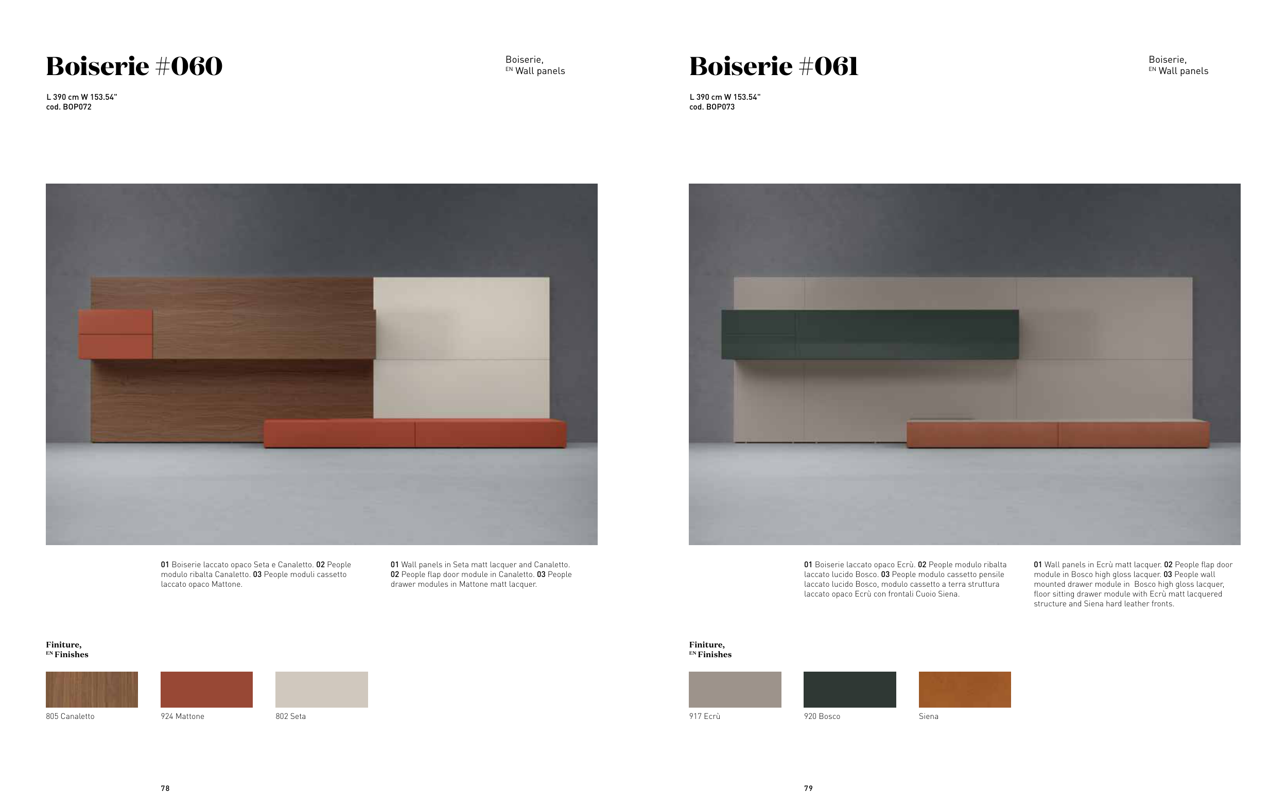 01 Boiserie laccato opaco Seta e Canaletto. 02 People