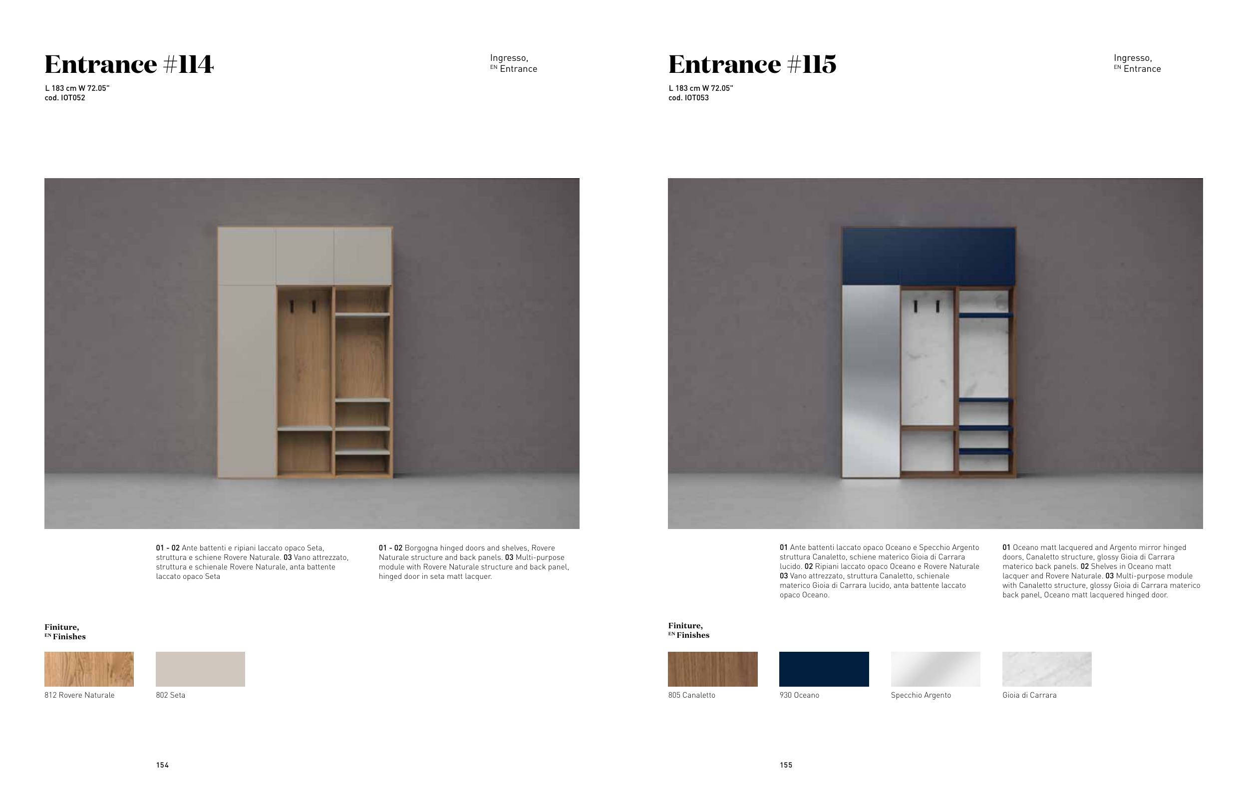 01 - 02 Ante battenti e ripiani laccato opaco Seta,
