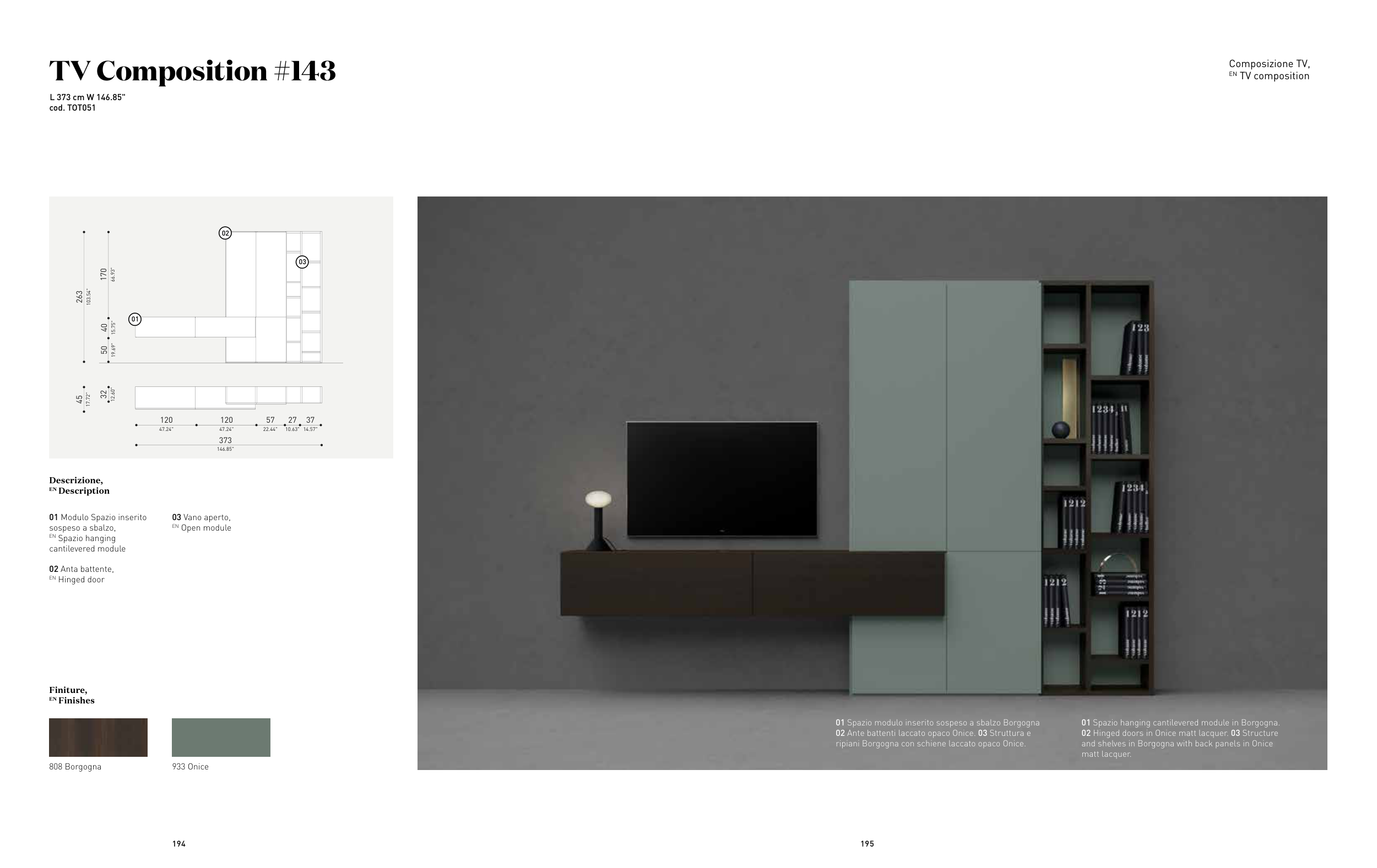 02 Ante battenti laccato opaco Onice. 03 Struttura e