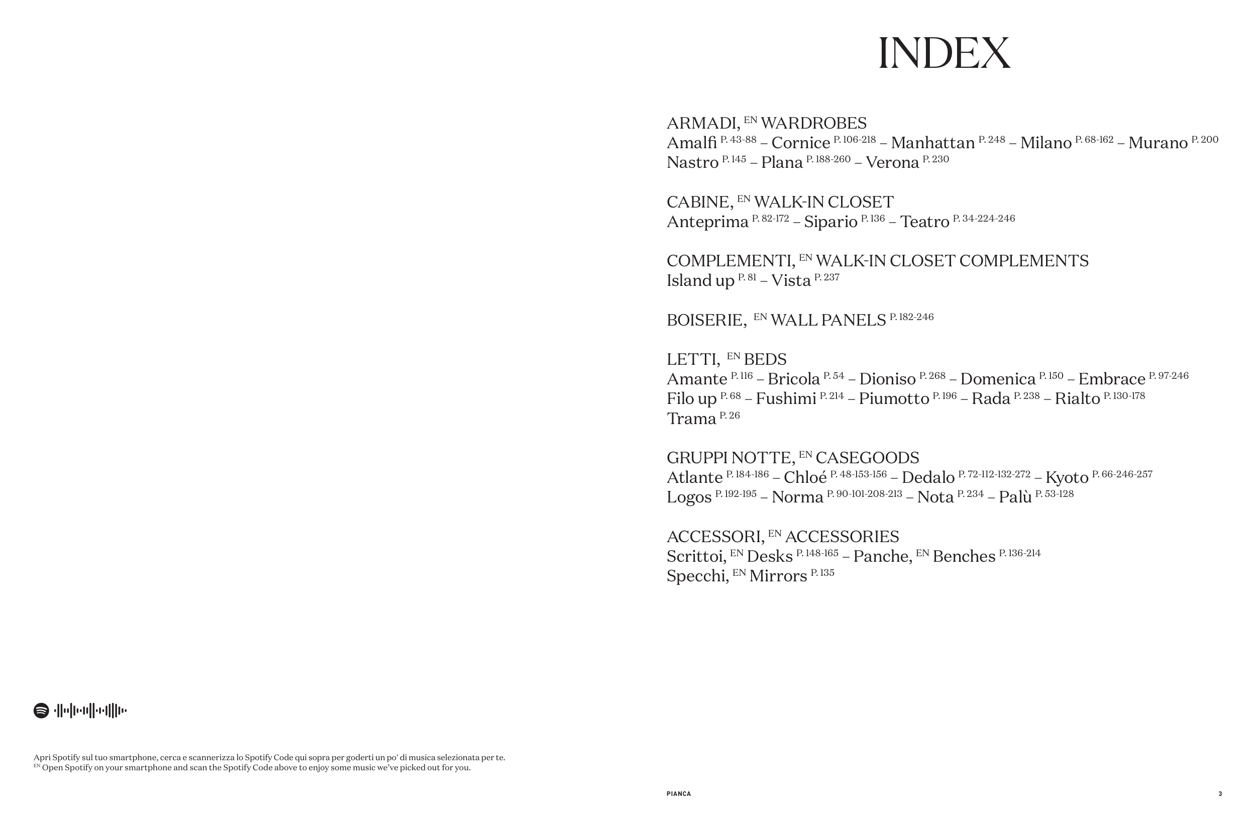 Amalfi P. 43-88 – Cornice P. 106-218 – Manhattan P. 248 – Milano P. 68-162 – Murano P. 200