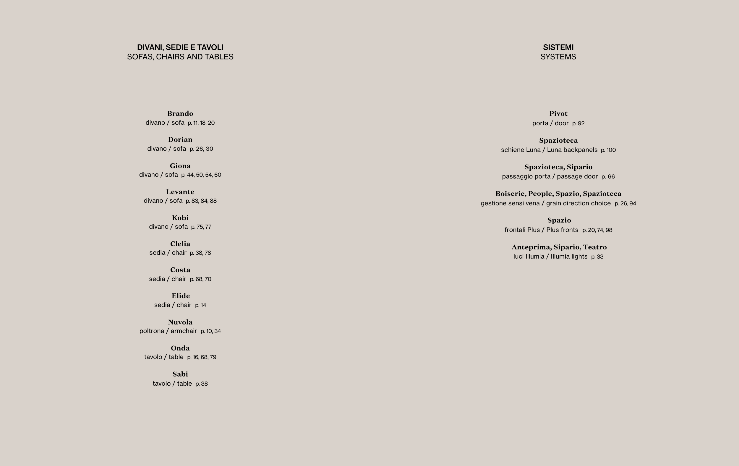 divano / sofa p. 44, 50, 54, 60