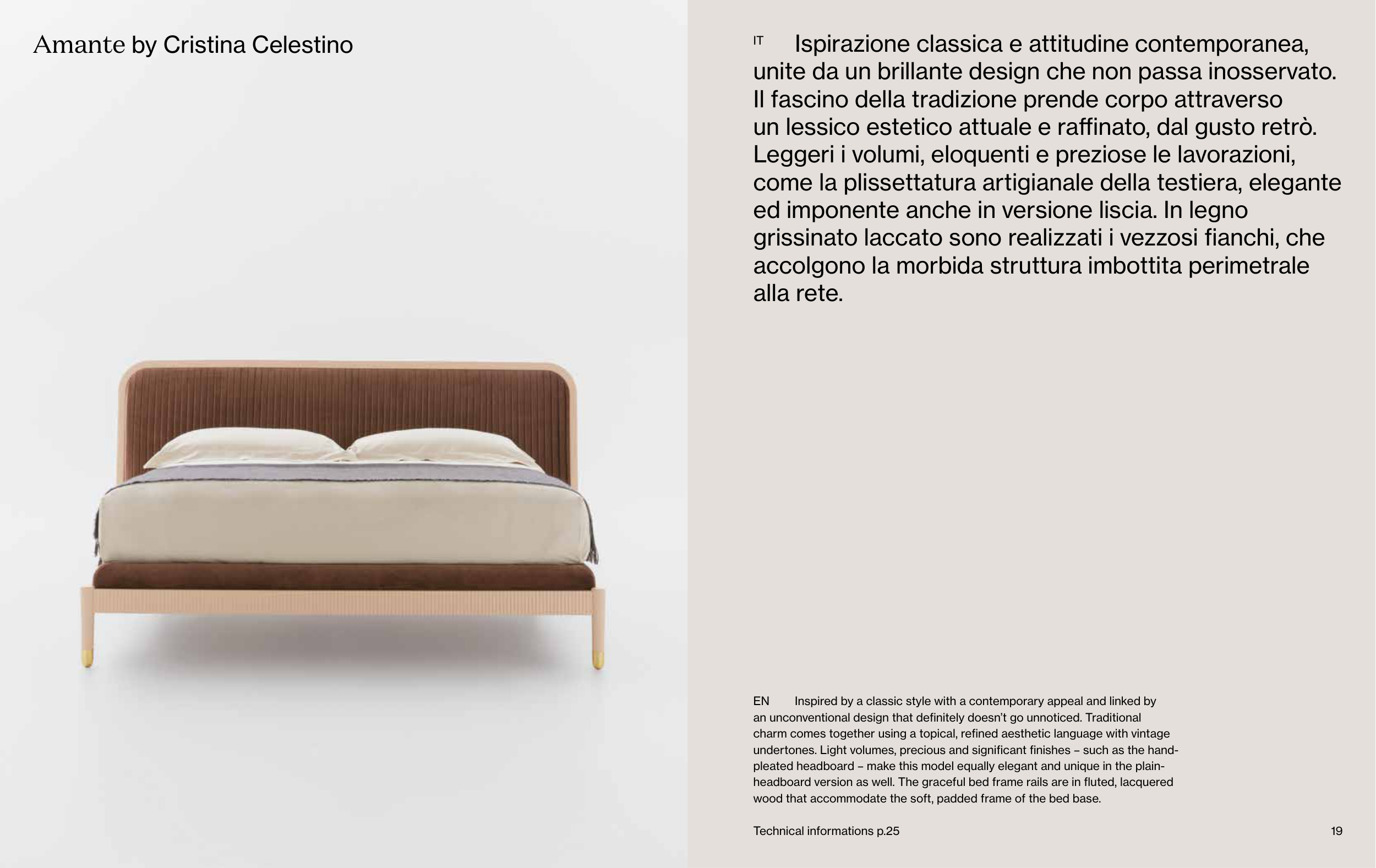 headboard version as well. The graceful bed frame rails are in fluted, lacquered