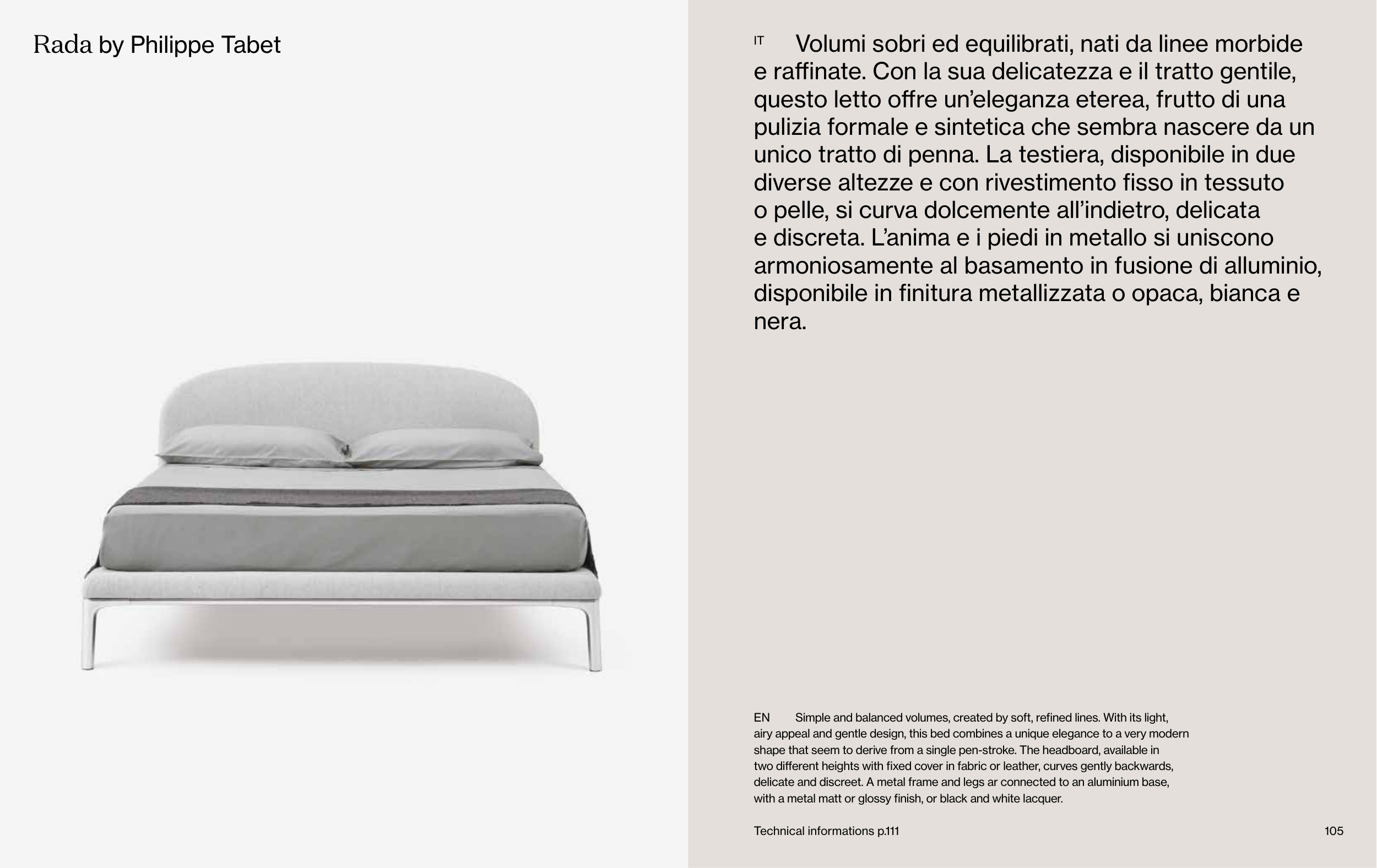 airy appeal and gentle design, this bed combines a unique elegance to a very modern