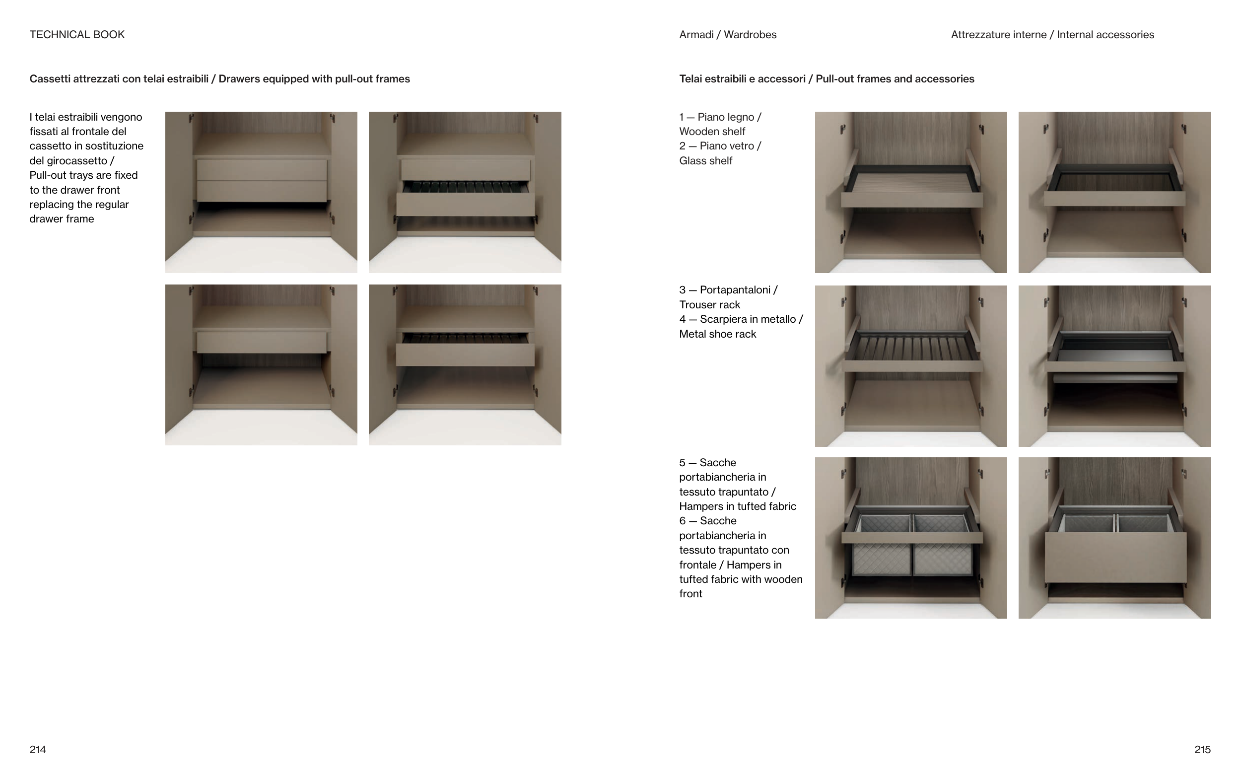 Cassetti attrezzati con telai estraibili / Drawers equipped with pull-out frames