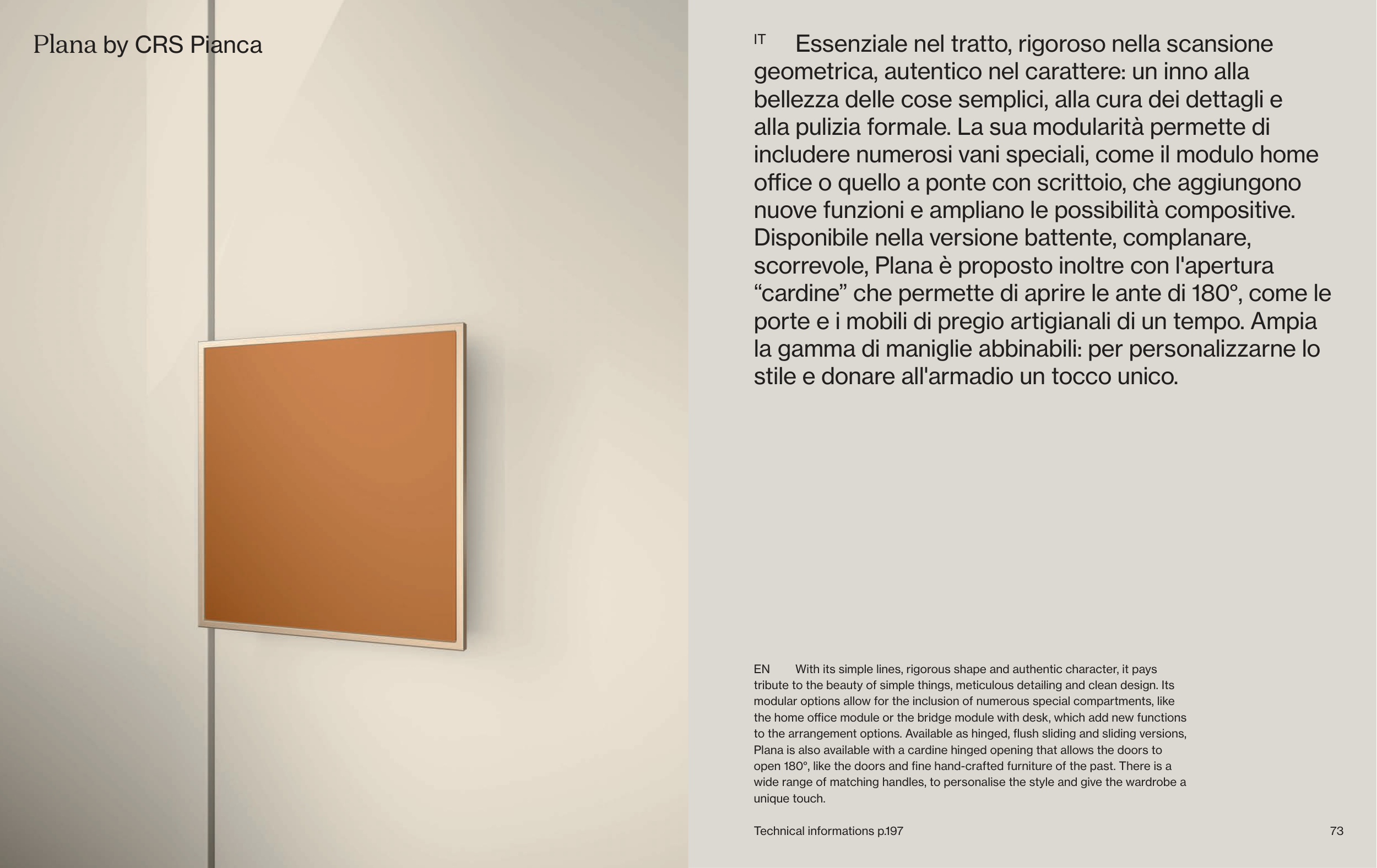Plana is also available with a cardine hinged opening that allows the doors to