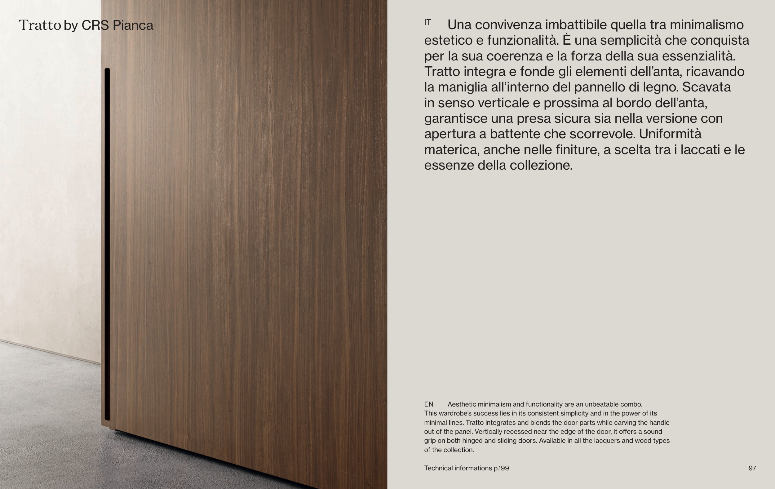 minimal lines. Tratto integrates and blends the door parts while carving the handle