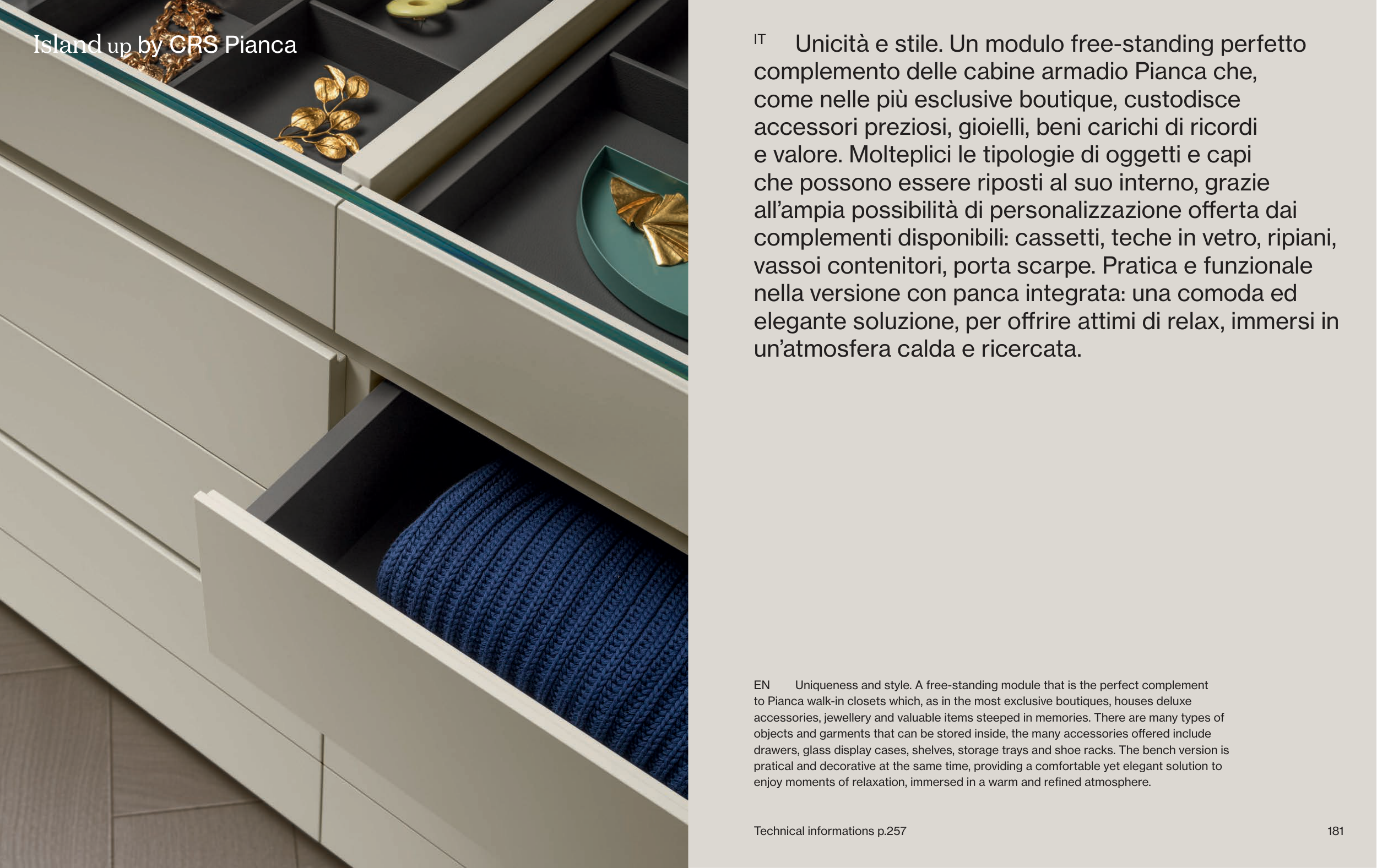 to Pianca walk-in closets which, as in the most exclusive boutiques, houses deluxe