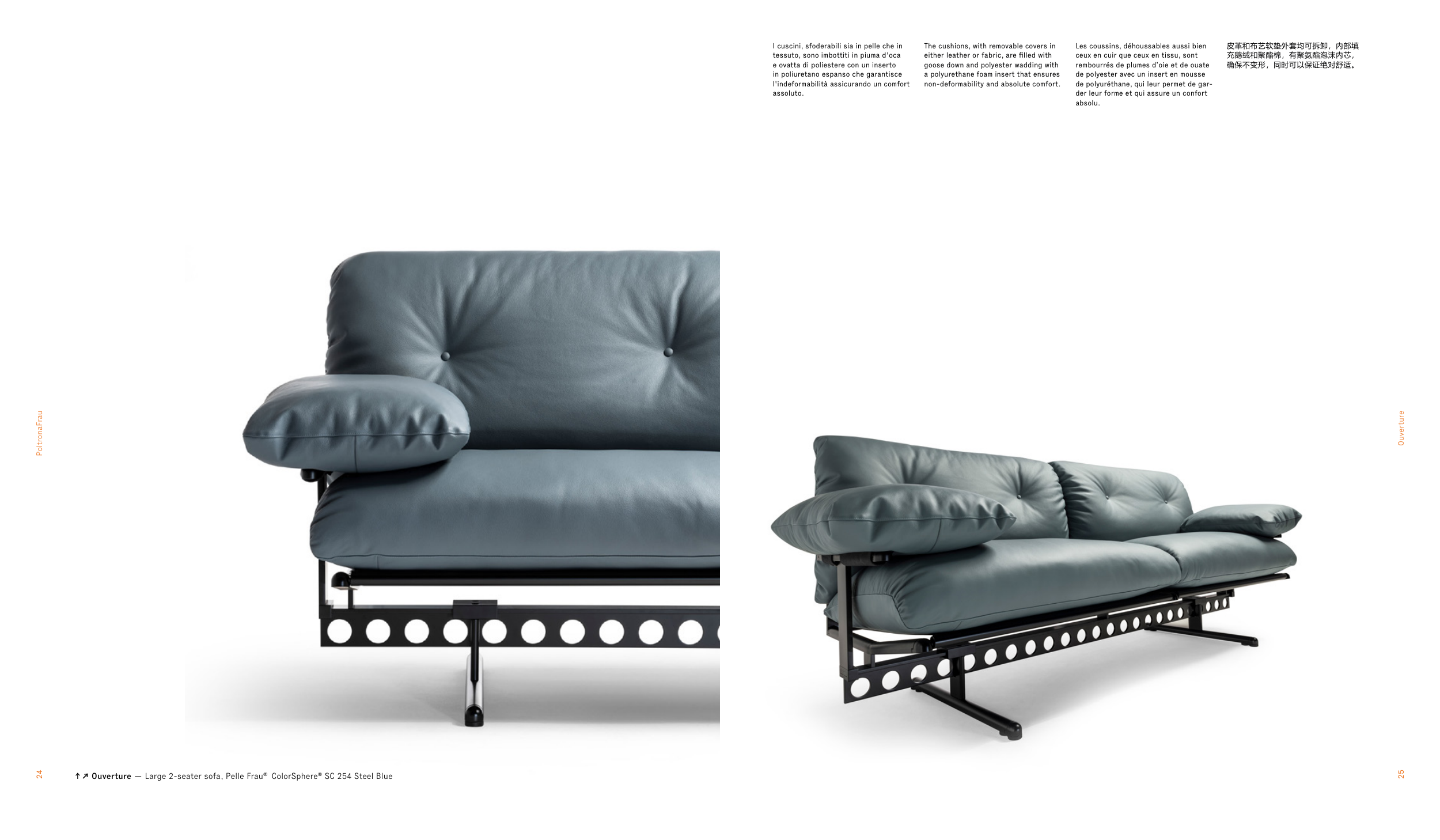 ↑↗ Ouverture — Large 2-seater sofa, Pelle Frau® ColorSphere® SC 254 Steel Blue