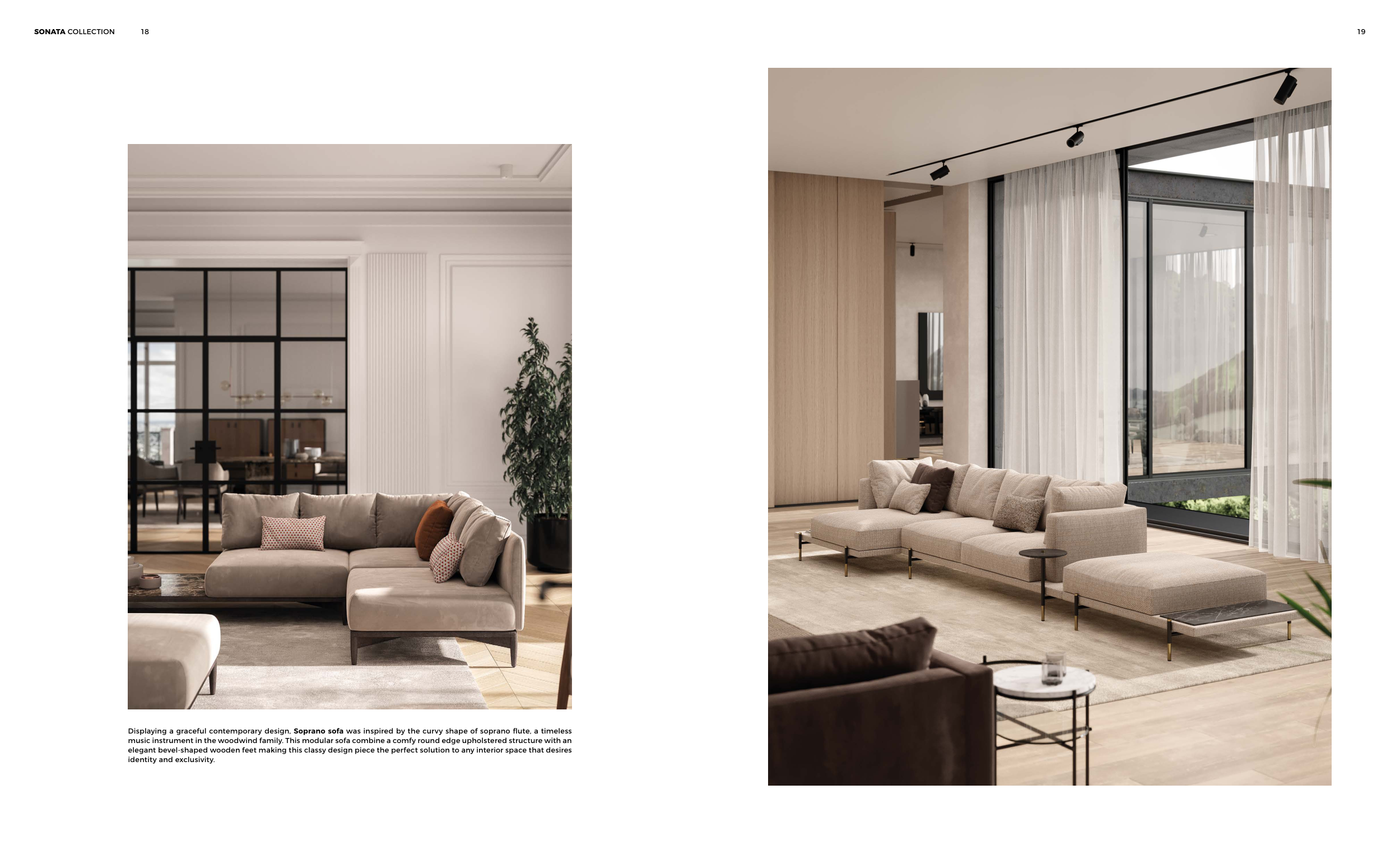 Displaying a graceful contemporary design, Soprano sofa was inspired by the curvy shape of soprano flute, a timeless