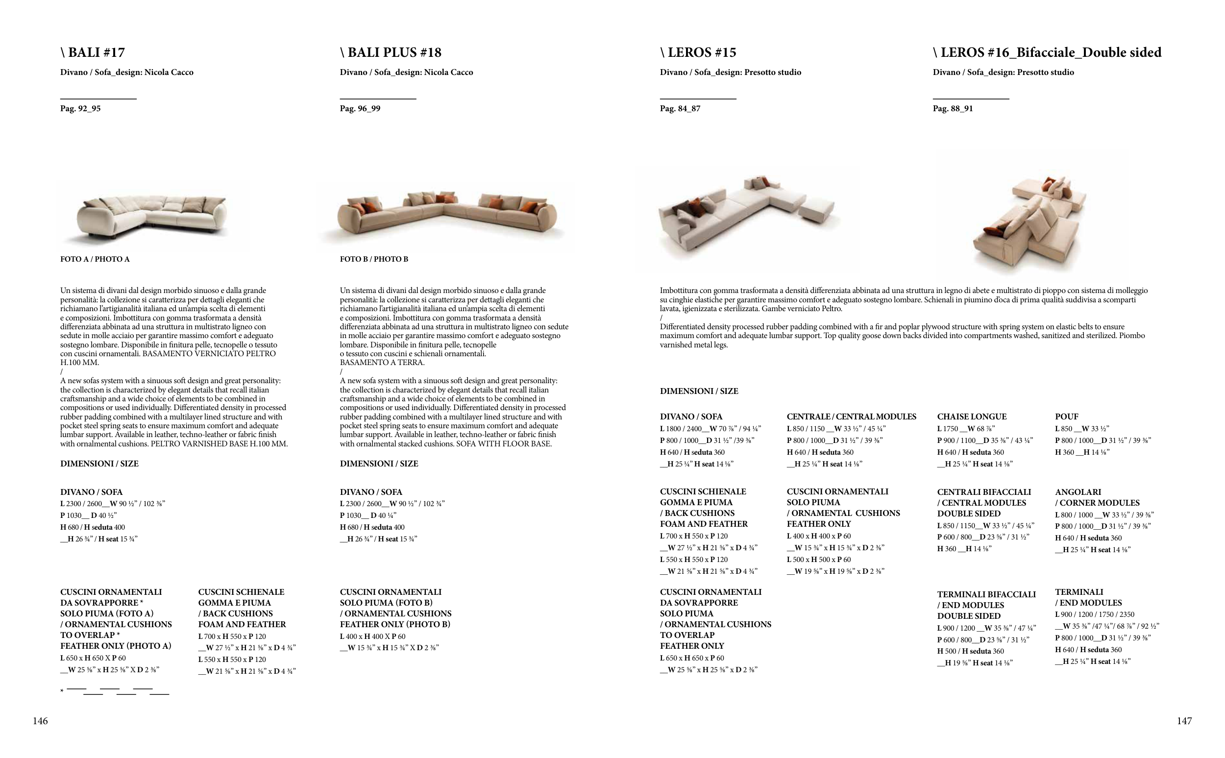 maximum comfort and adequate lumbar support. Top quality goose down backs divided into compartments washed, sanitized and sterilized. Piombo