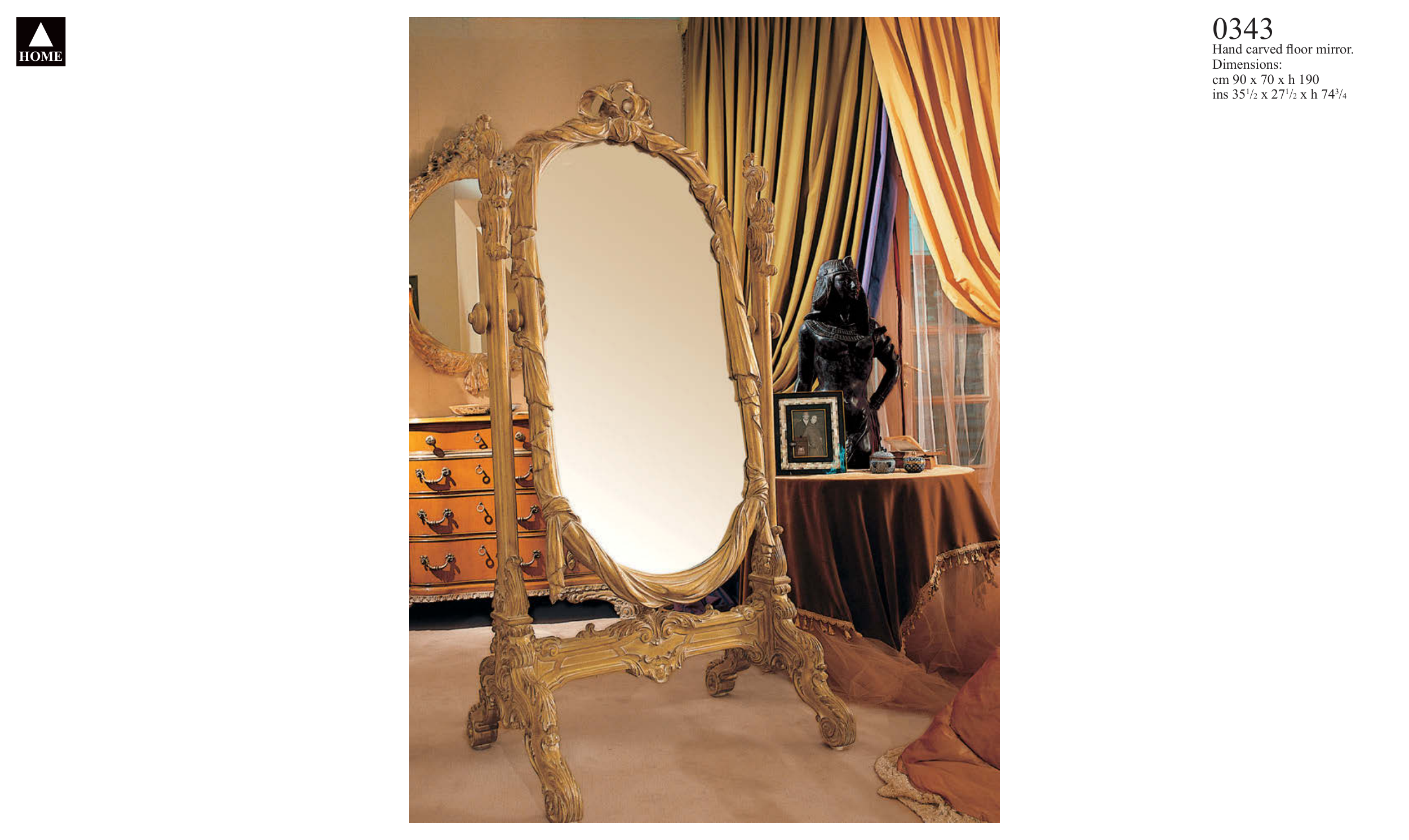 Hand carved fl oor mirror.