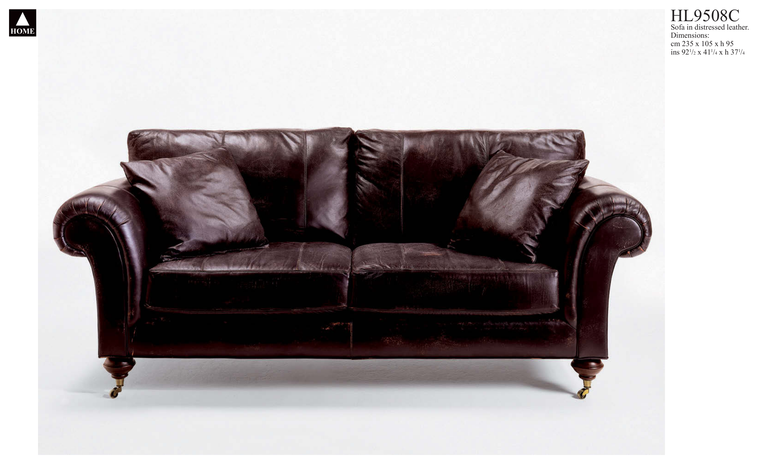 Sofa in distressed leather.