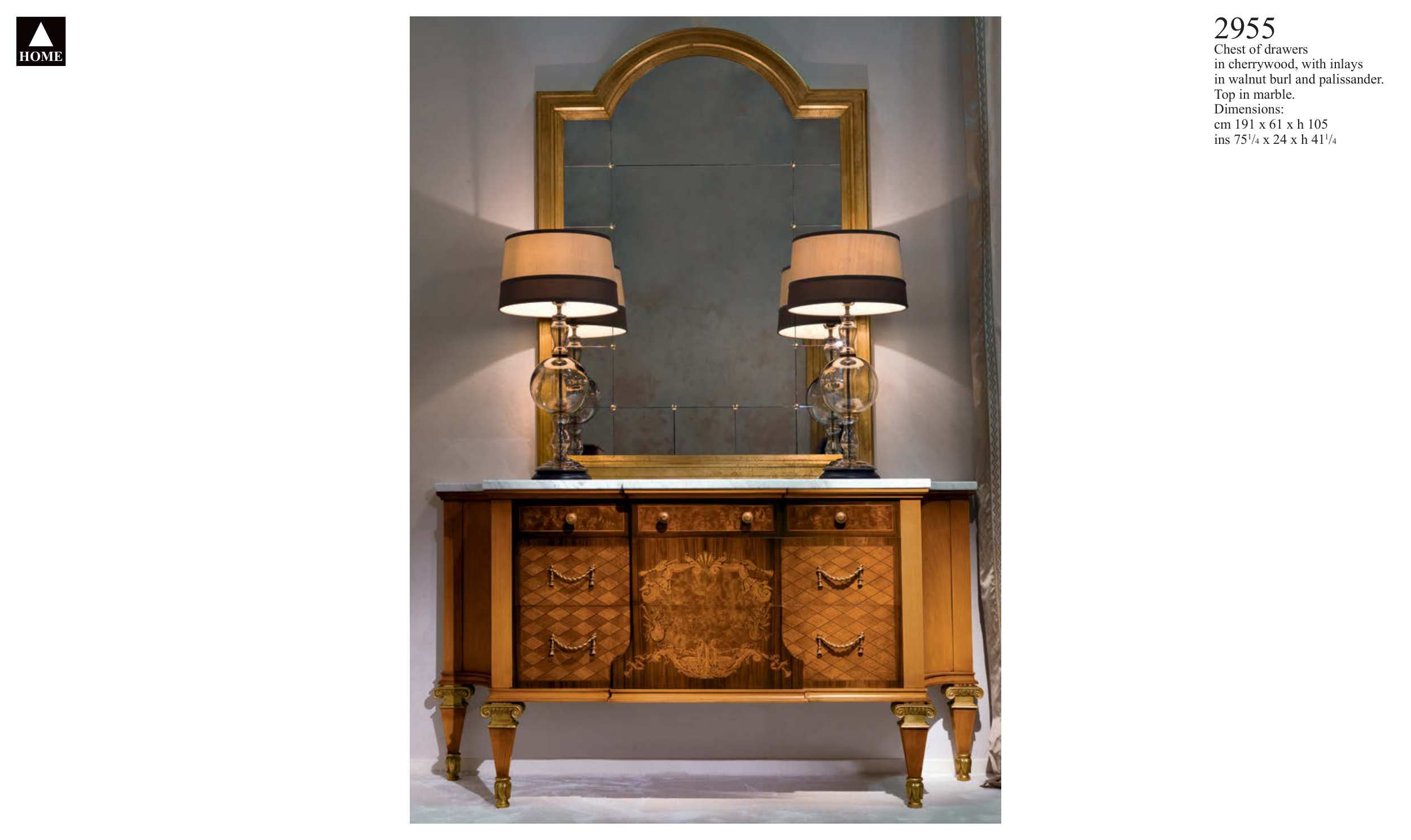in walnut burl and palissander.