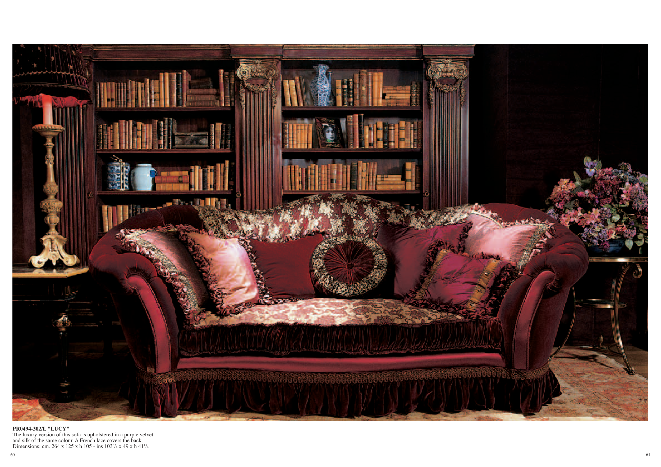 The luxury version of this sofa is upholstered in a purple velvet