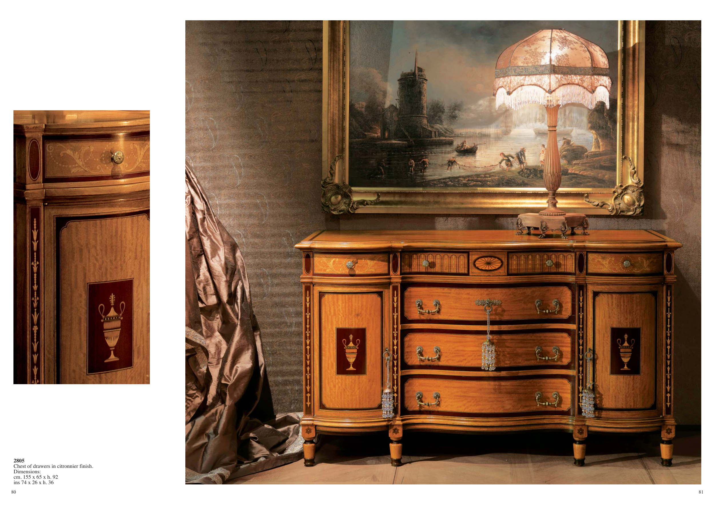 Chest of drawers in citronnier finish.