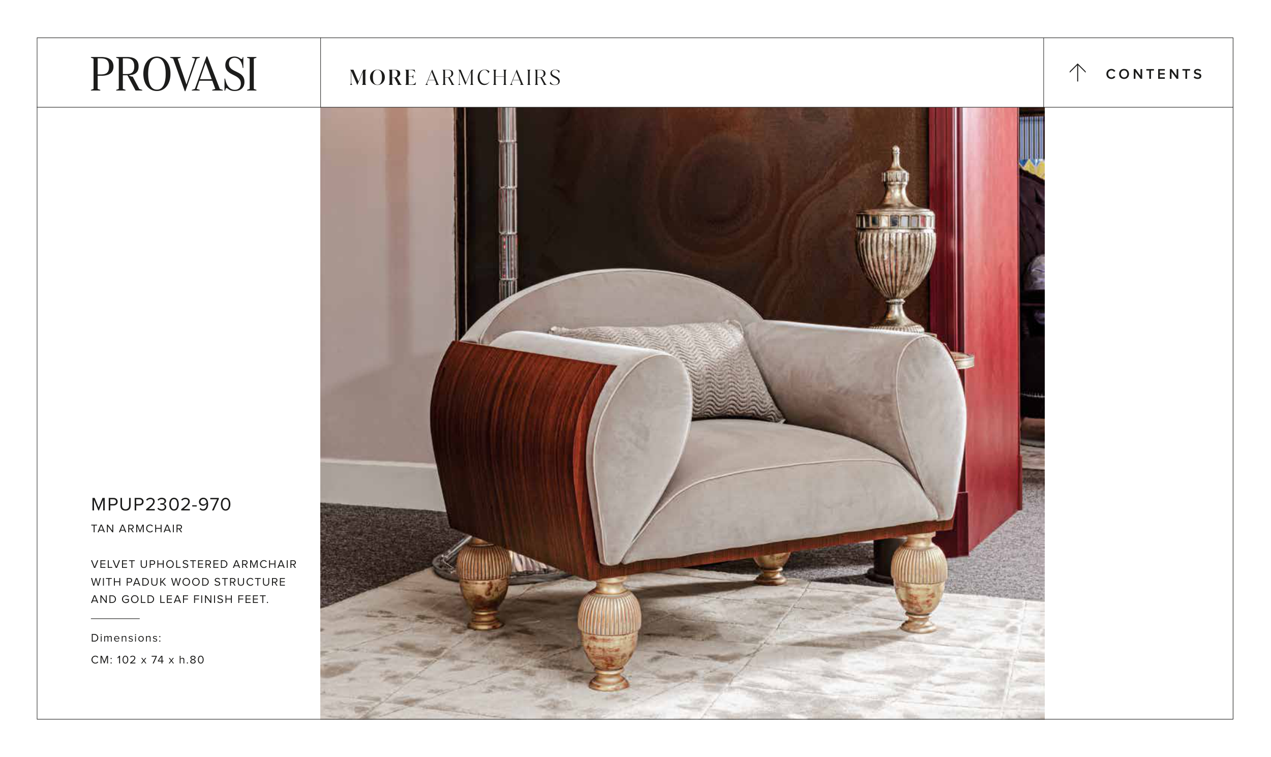 VELVET UPHOLSTERED ARMCHAIR