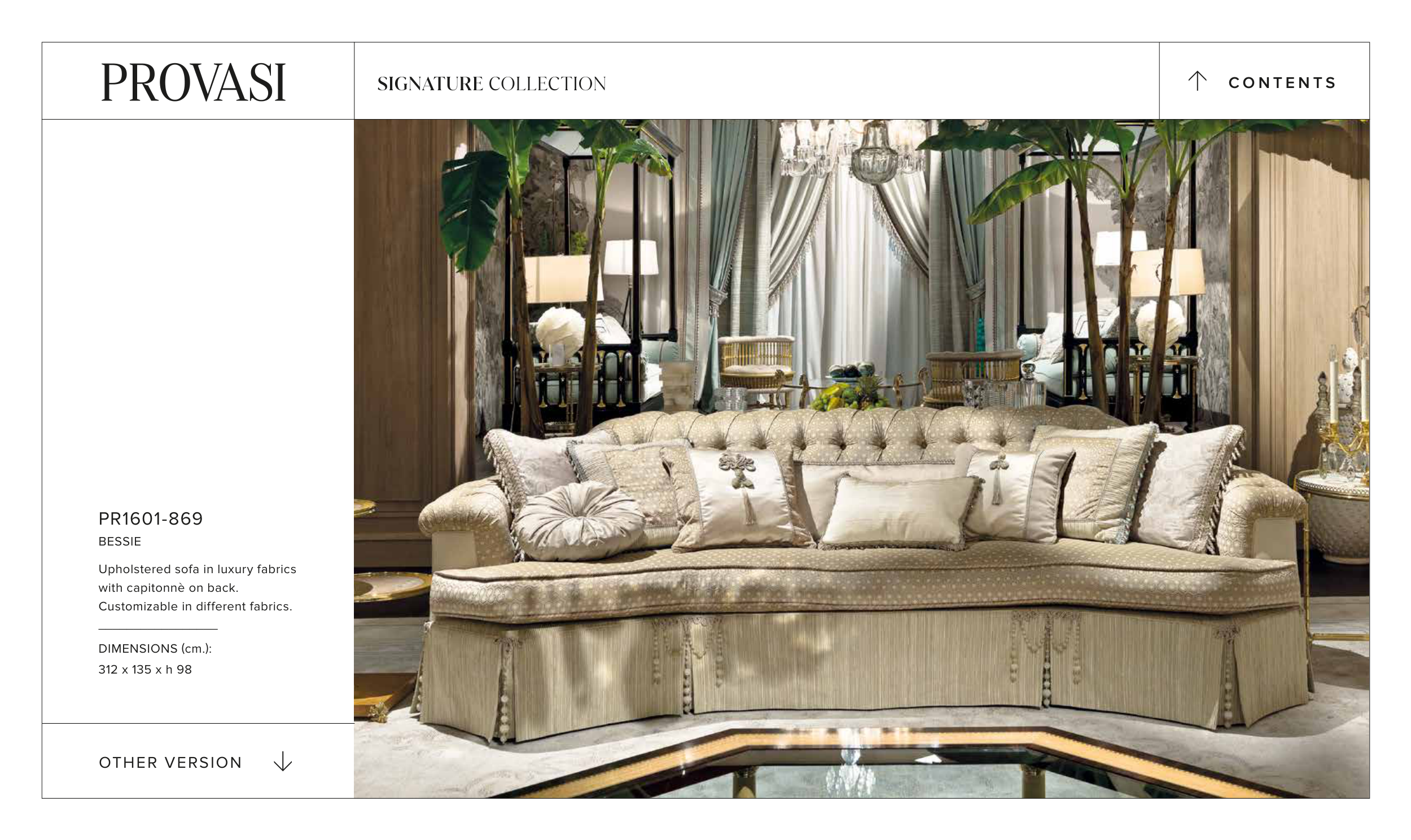 Customizable in different fabrics.