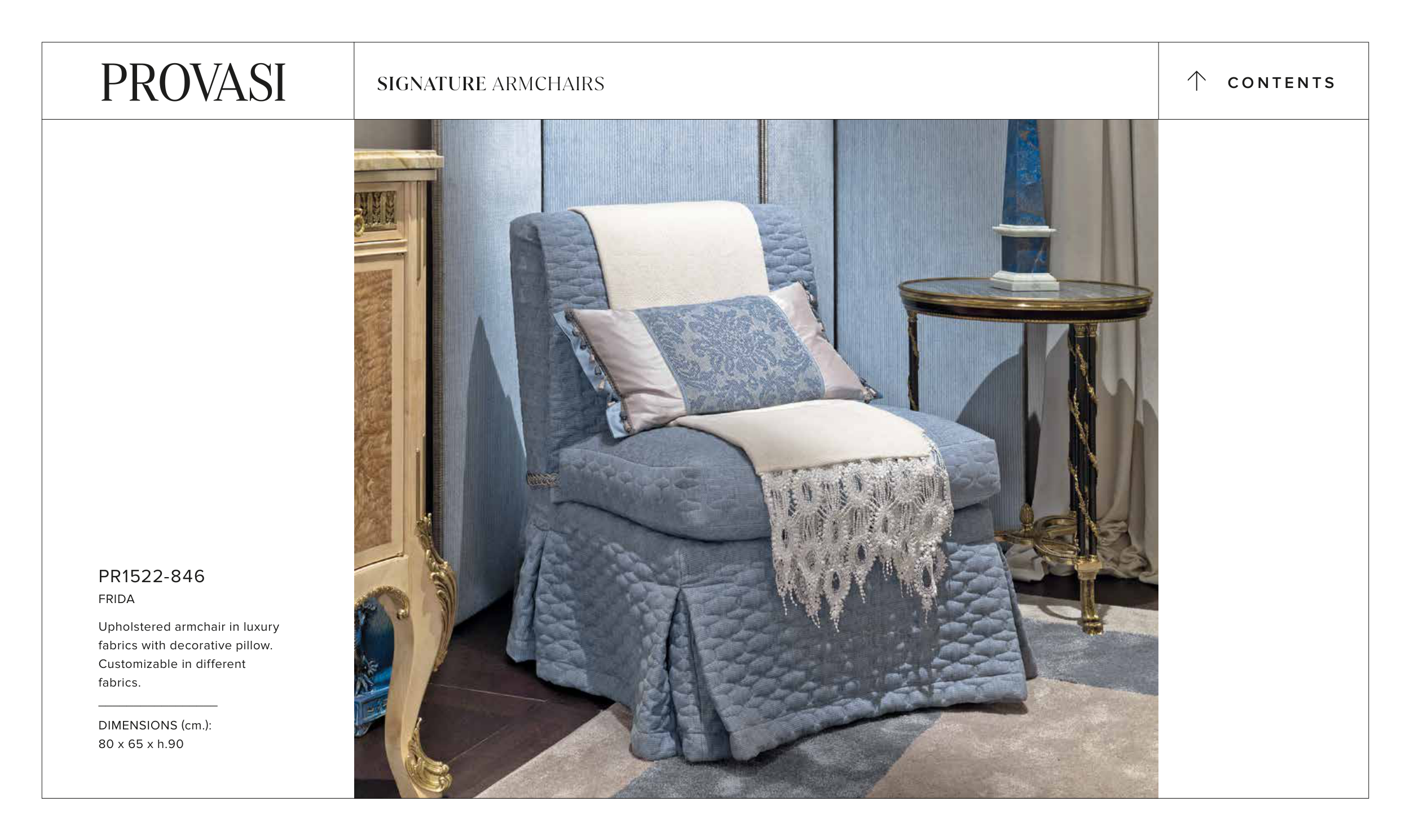 Upholstered armchair in luxury