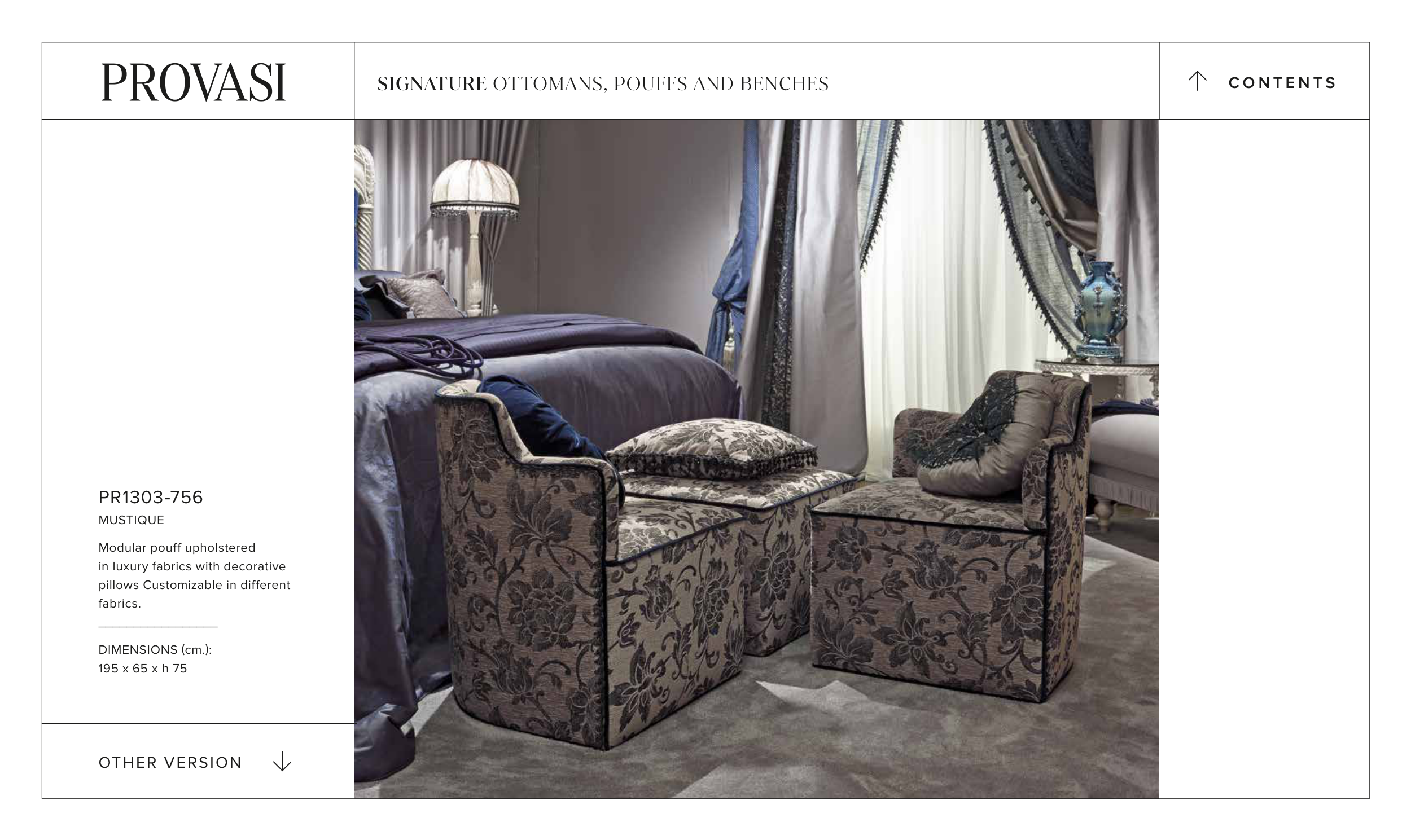 SIGNATURE OTTOMANS, POUFFS AND BENCHES