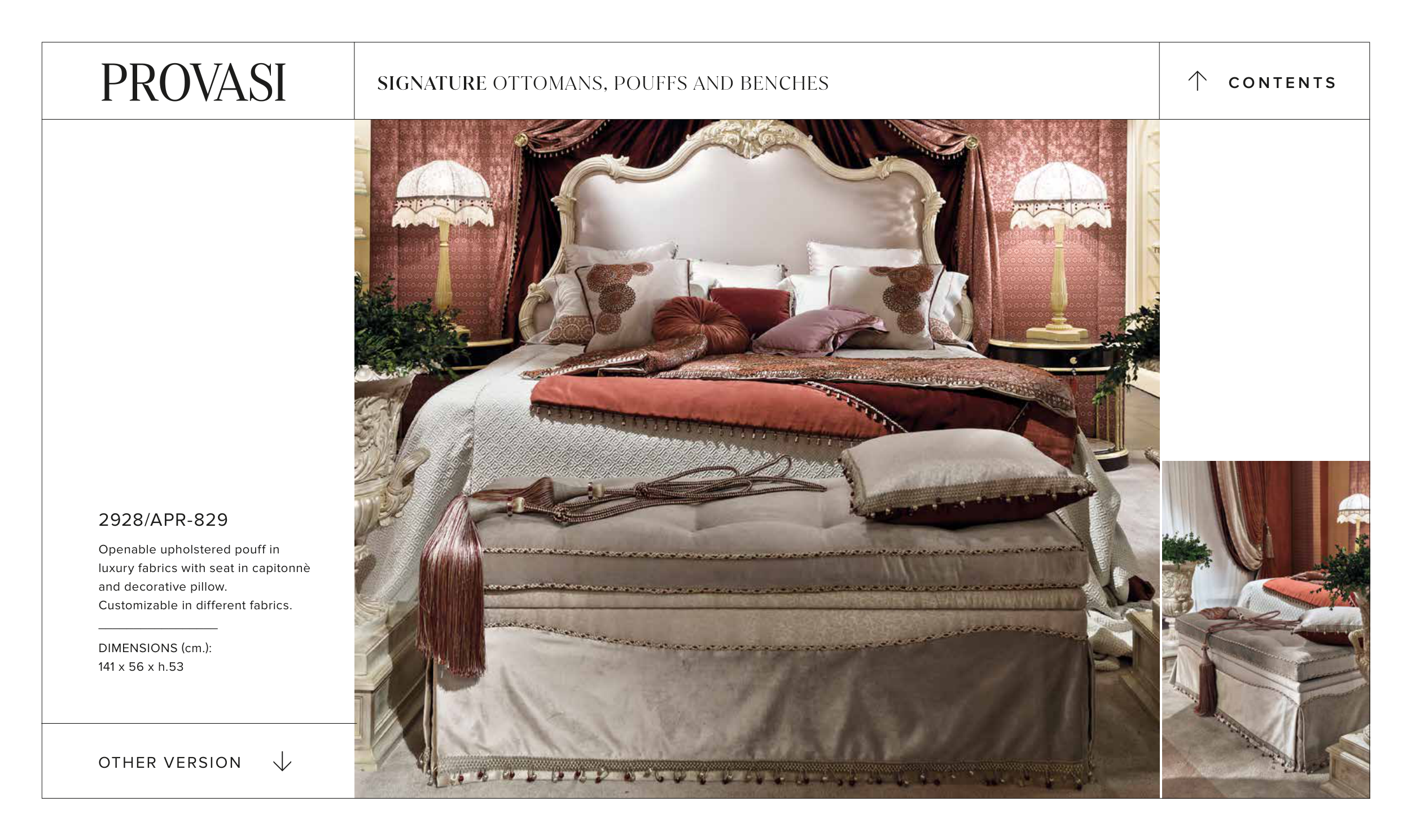 Customizable in different fabrics.