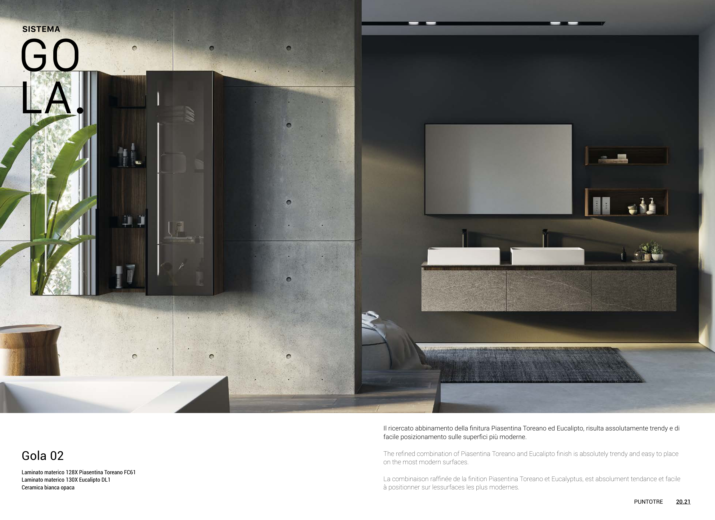 Il ricercato abbinamento della finitura Piasentina Toreano ed Eucalipto, risulta assolutamente trendy e di