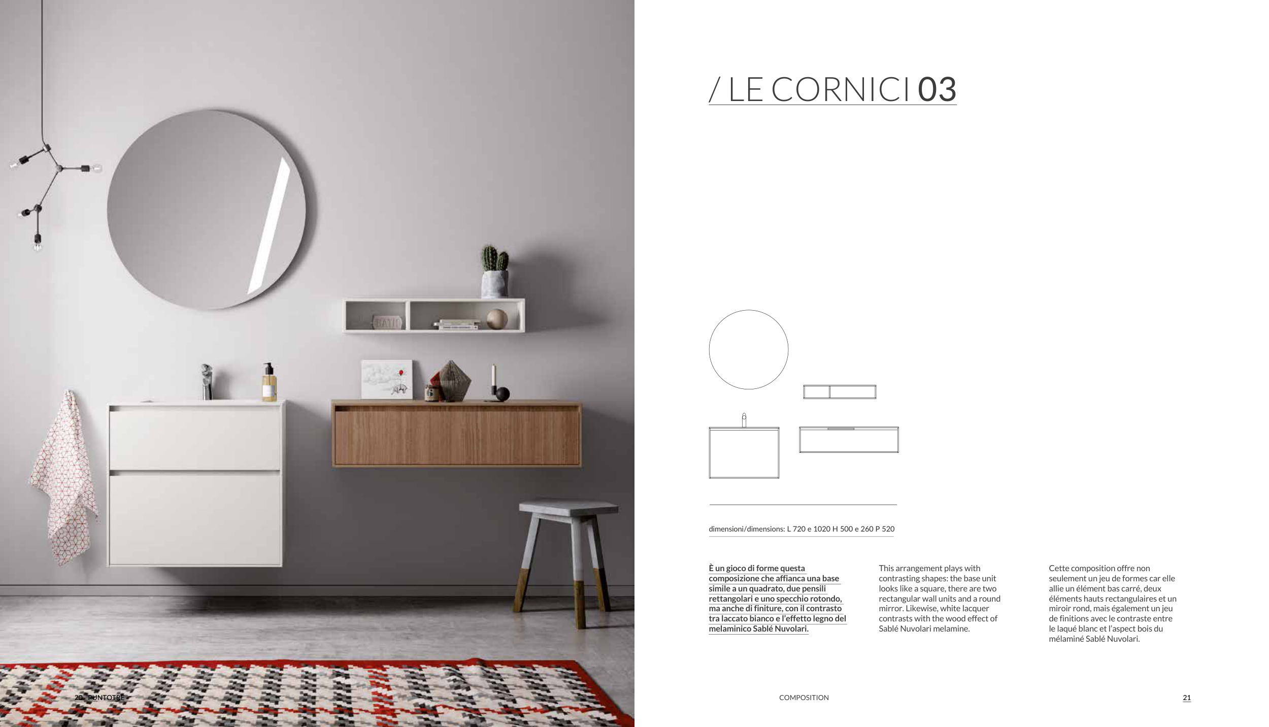 dimensioni/dimensions: L 720 e 1020 H 500 e 260 P 520