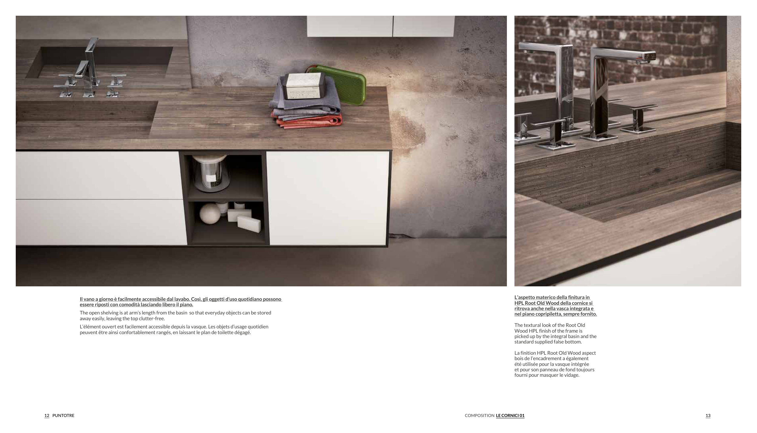 Il vano a giorno è facilmente accessibile dal lavabo. Così, gli oggetti d’uso quotidiano possono