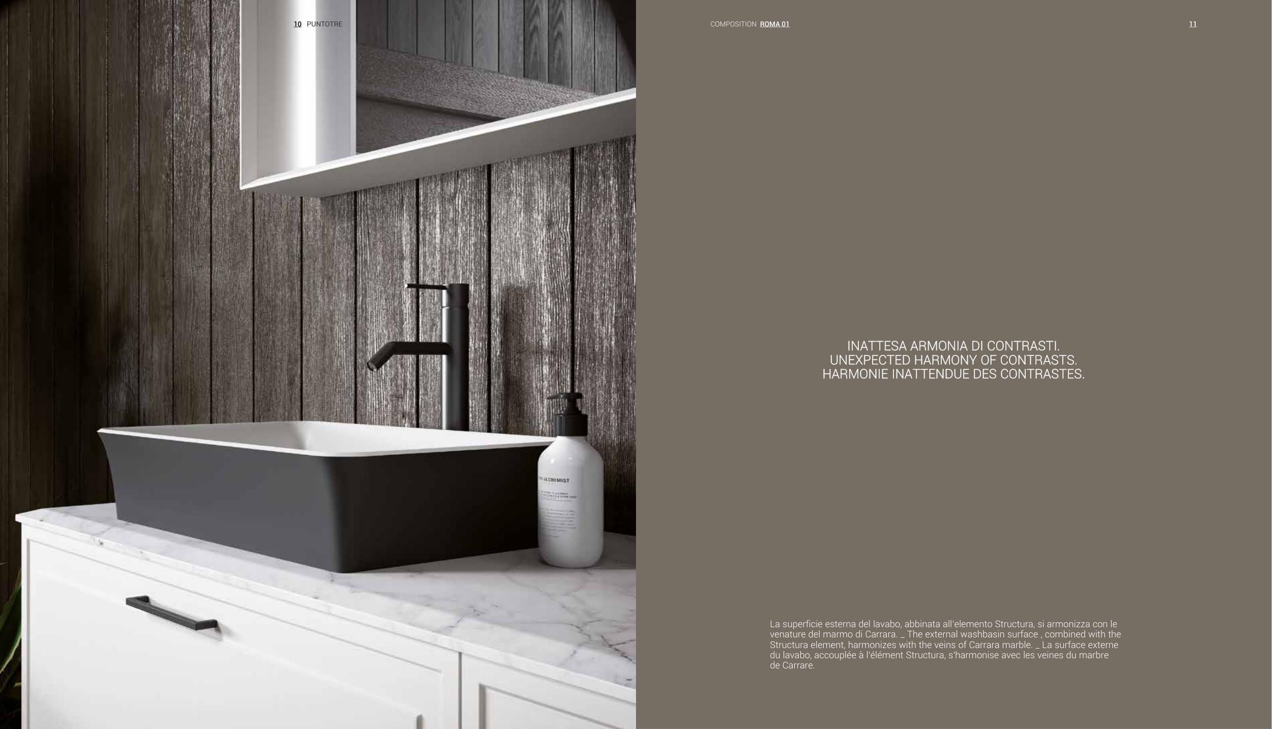 du lavabo, accouplée à l'élément Structura, s'harmonise avec les veines du marbre