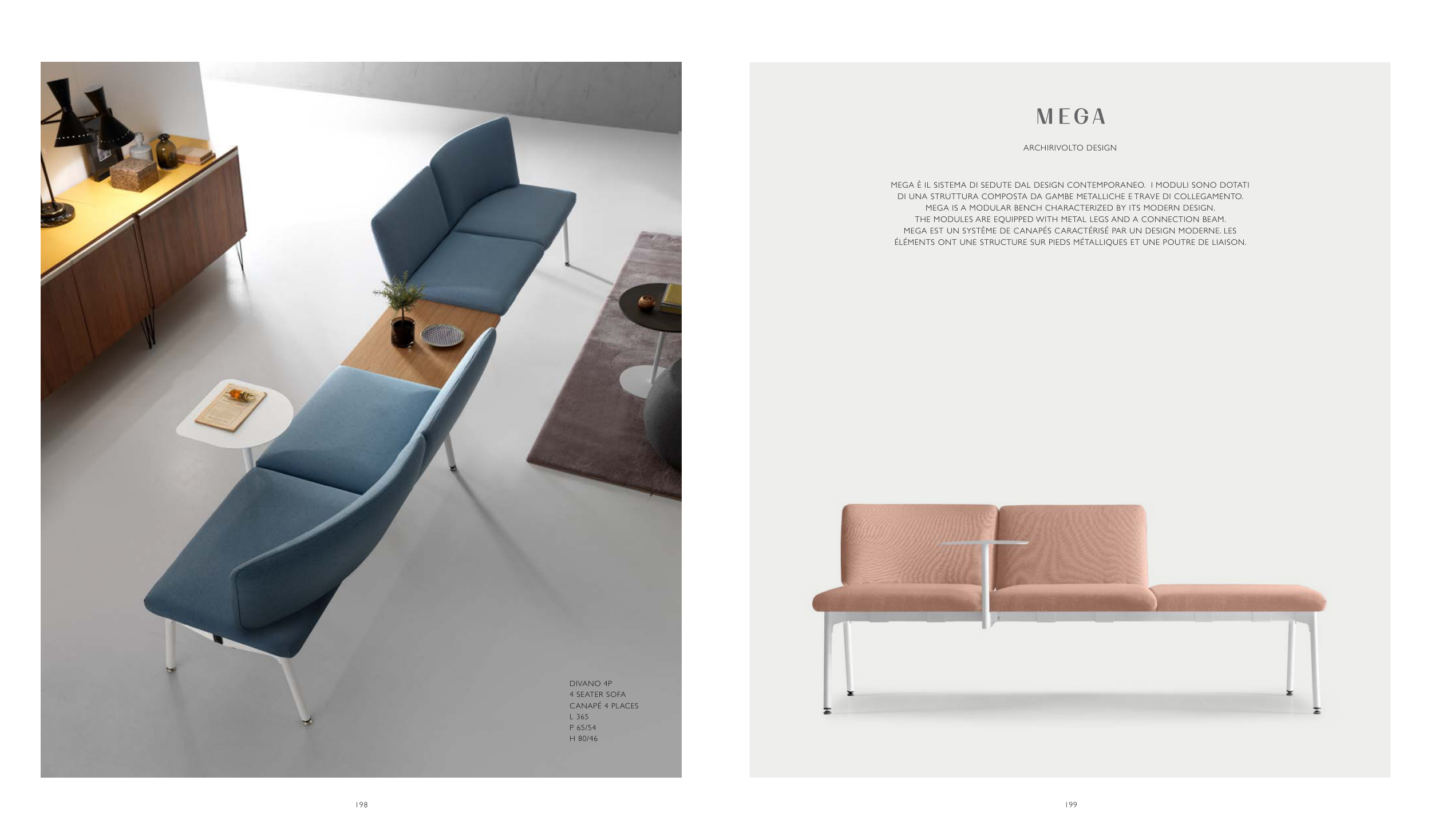 MEGA è IL sIsTEMA DI sEDUTE DAL DEsIGN CONTEMPORANEO. I MODULI sONO DOTATI