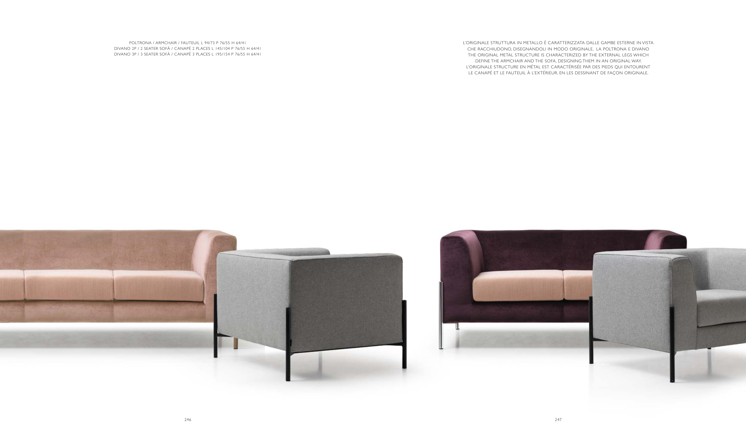 divano 2p / 2 seater sofà / canapé 2 places l 145/104 p 76/55 h 64/41