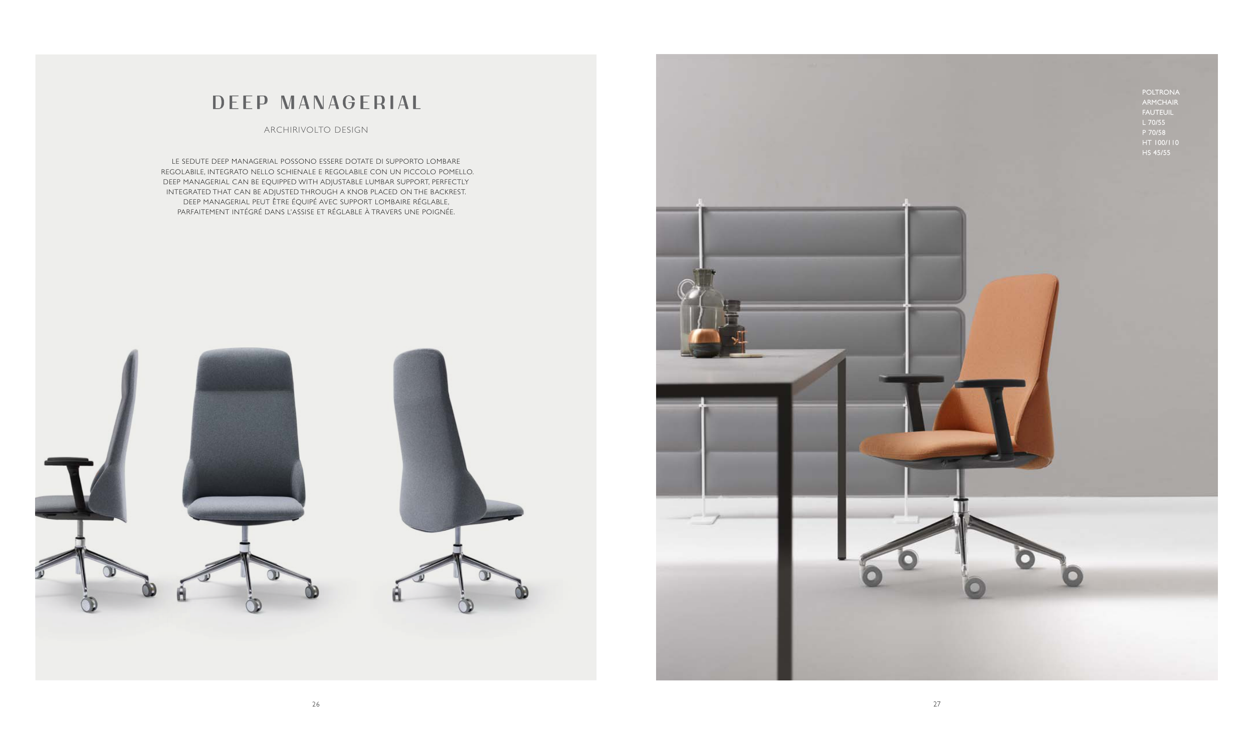 LE SEdUTE dEEp MANAgERIAL pOSSONO ESSERE dOTATE dI SUppORTO LOMbARE