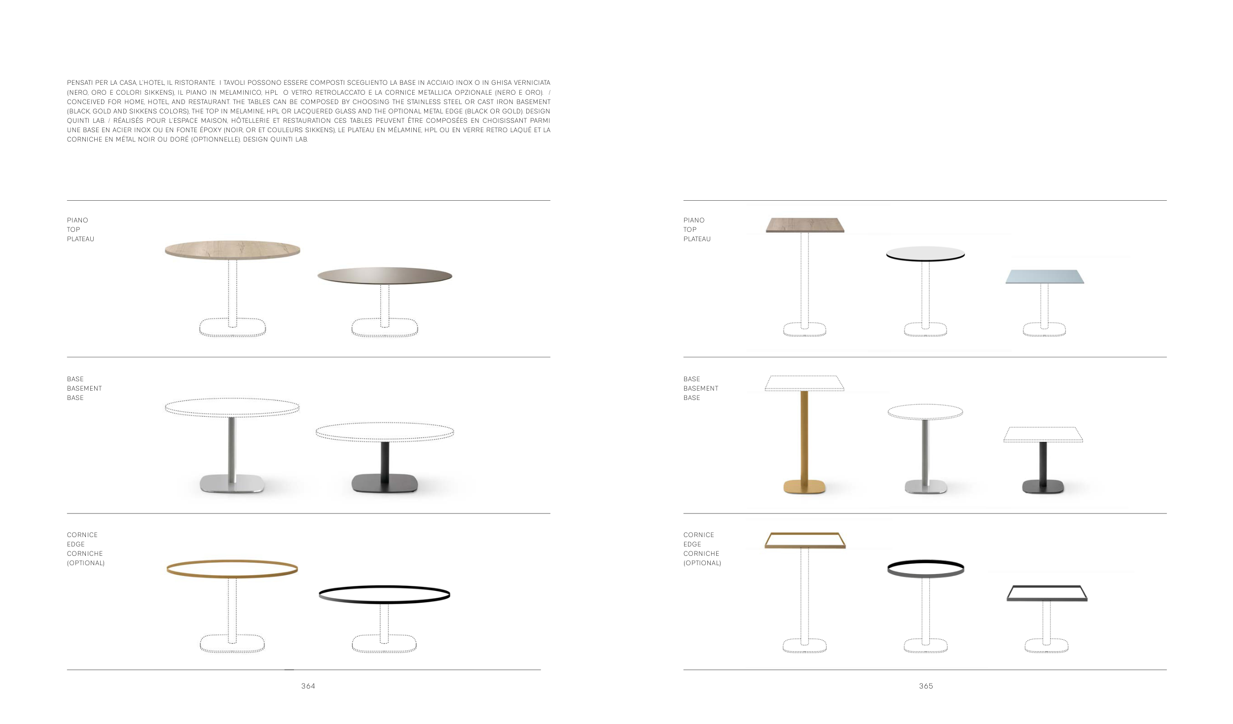 QUINTI LAB. / RÉALISÉS POUR L’ESPACE MAISON, HÔTELLERIE ET RESTAURATION CES TABLES PEUVENT ÊTRE COMPOSÉES EN CHOISISSANT PARMI