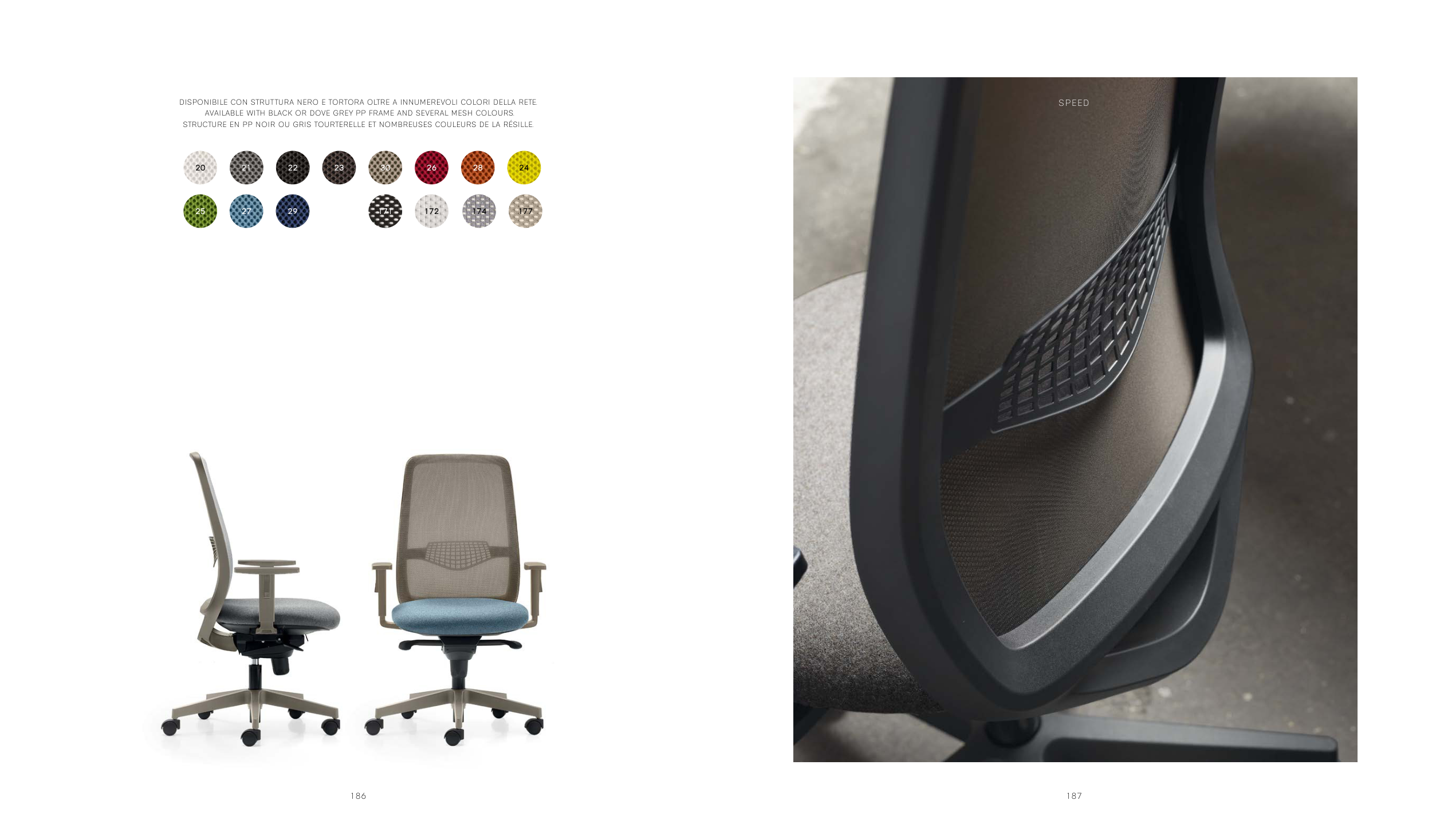 AVAILABLE WITH BLACK OR DOVE GREY PP FRAME AND SEVERAL MESH COLOURS.