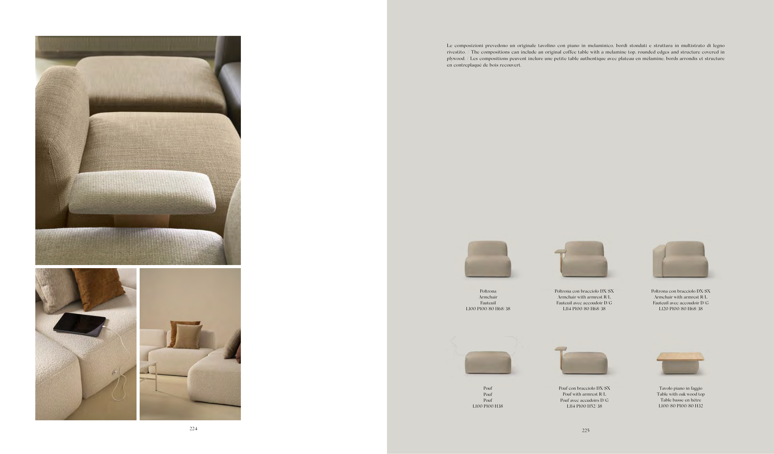 Pouf with armrest R/L