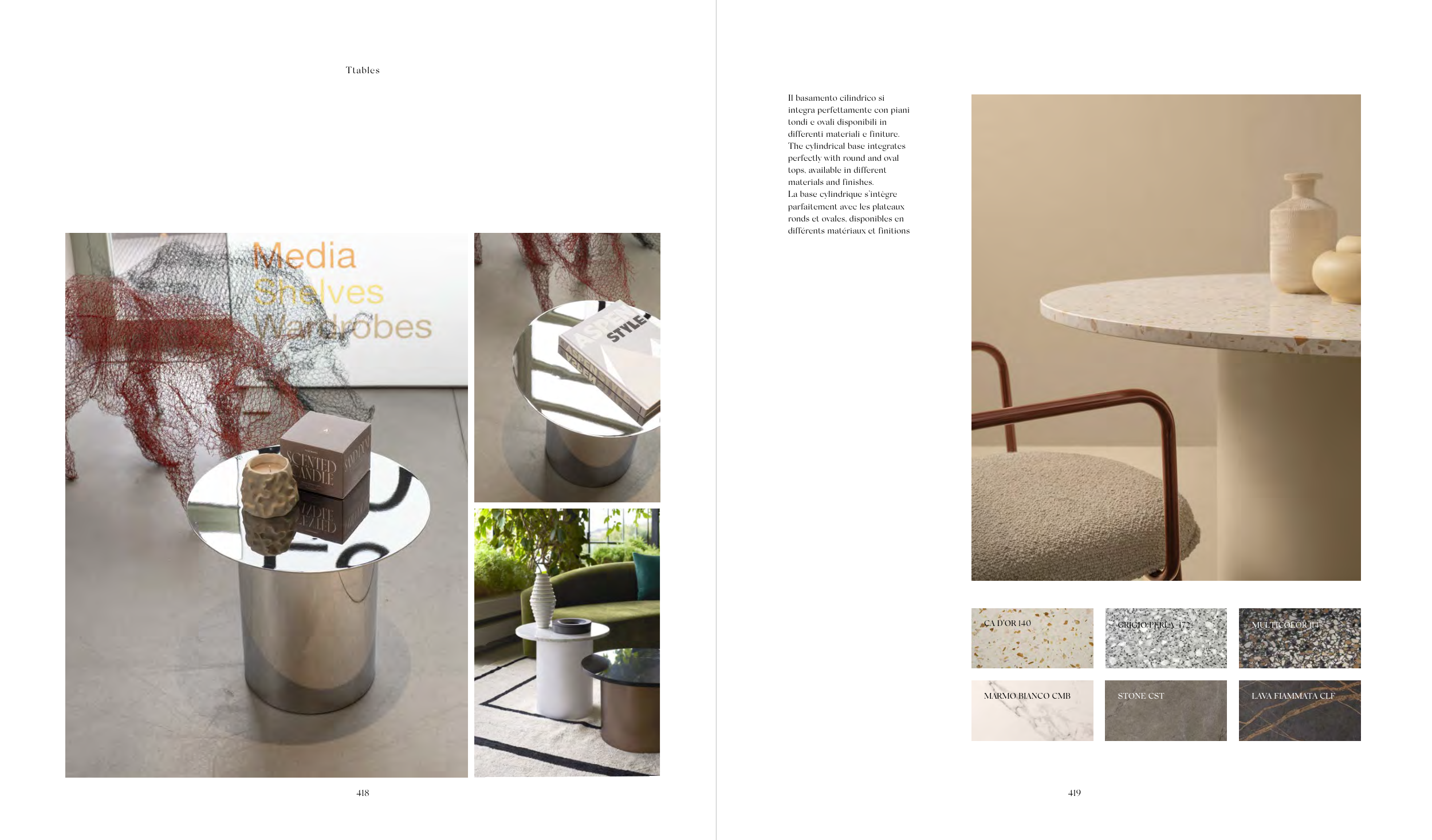differenti materiali e finiture.