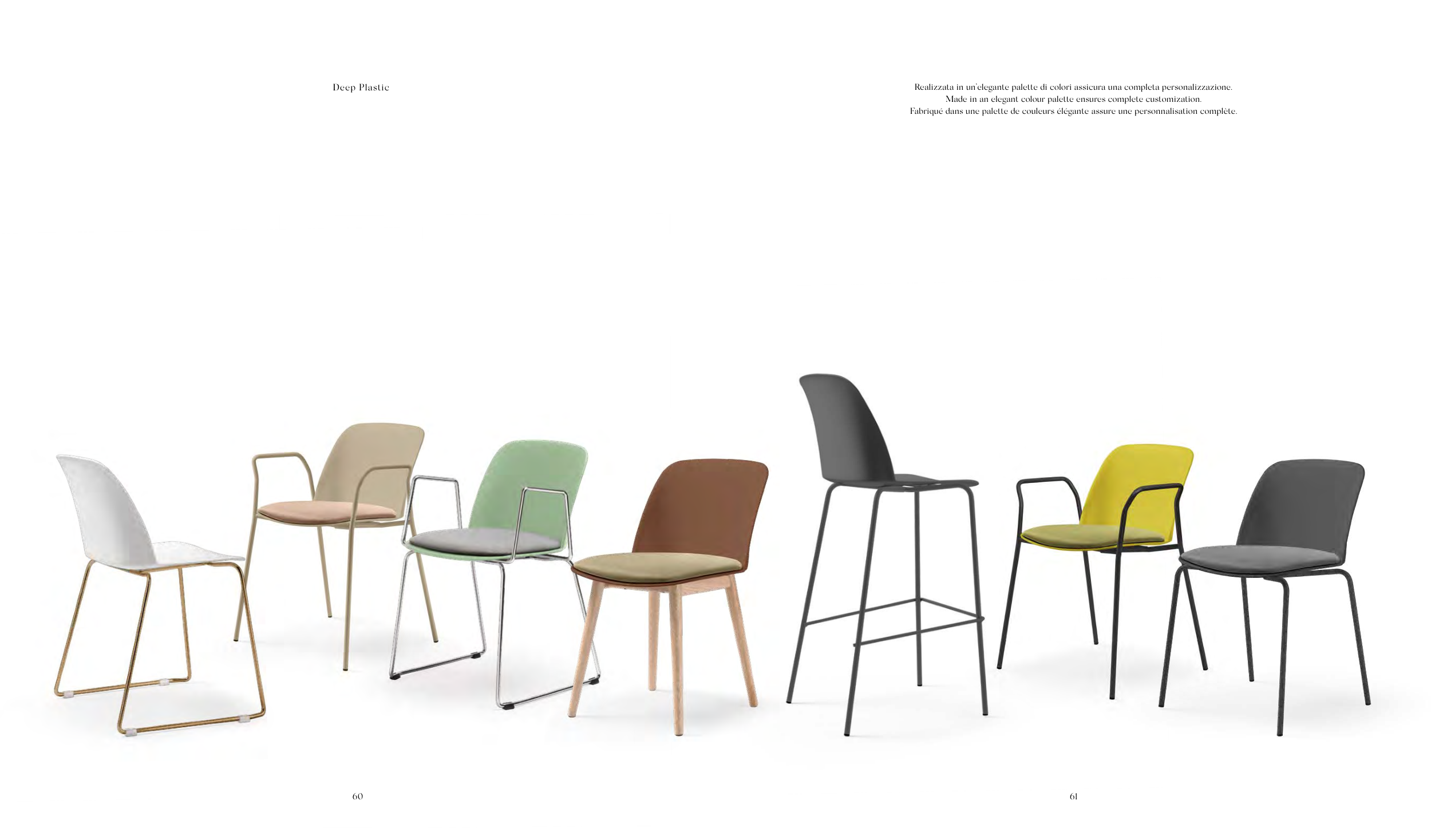 60 61 Deep Plastic Realizzata in un’elegante palette di colori assicura una completa personalizzazione. Made in an elegant colour palette ensures complete customization. Fabriqué dans une palette de couleurs élégante assure une personnalisation complète.