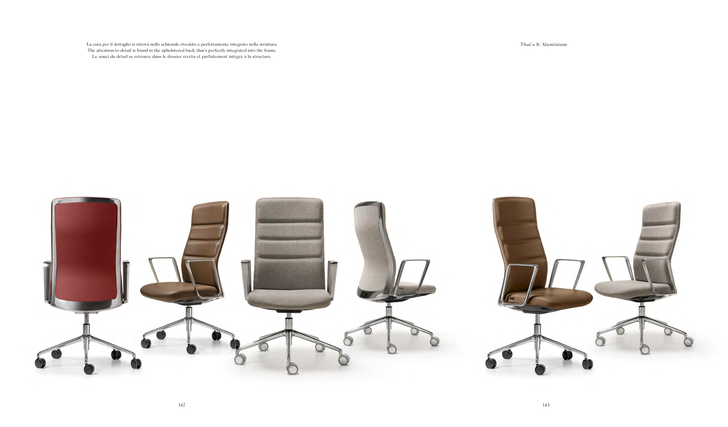 La cura per il dettaglio si ritrova nello schienale rivestito e perfettamente integrato nella struttura.