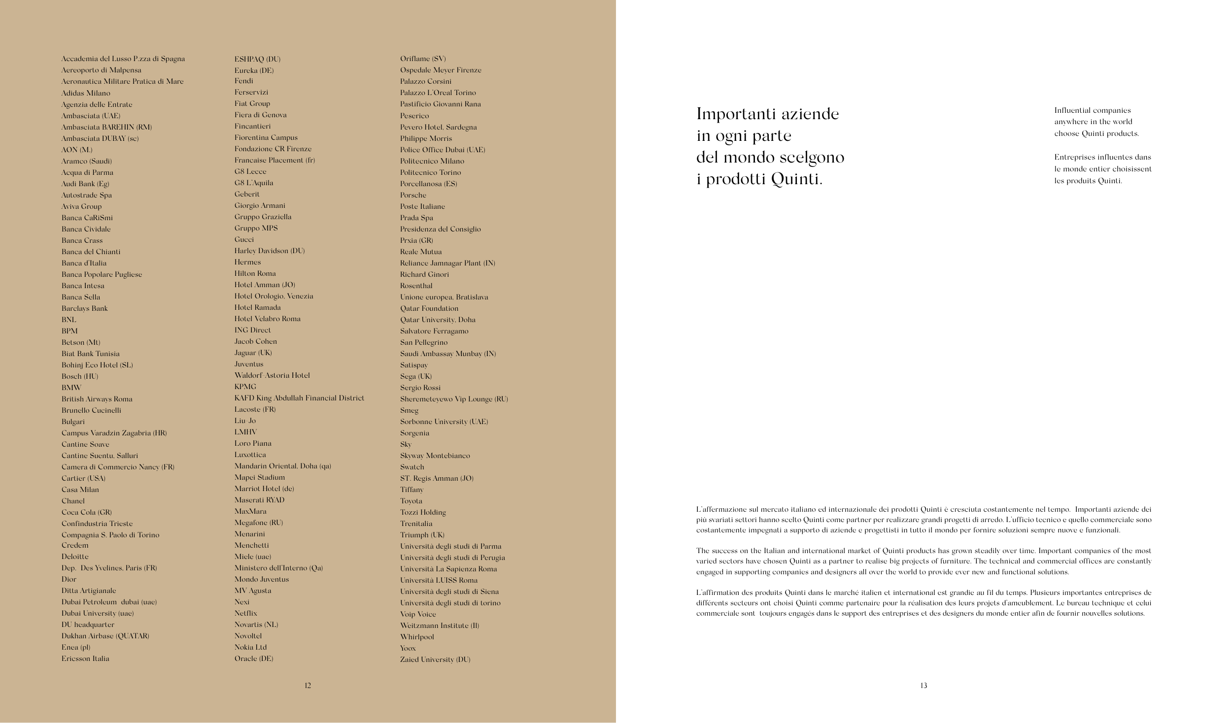 L’affirmation des produits Quinti dans le marché italien et international est grandie au fil du temps. Plusieurs importantes entreprises de