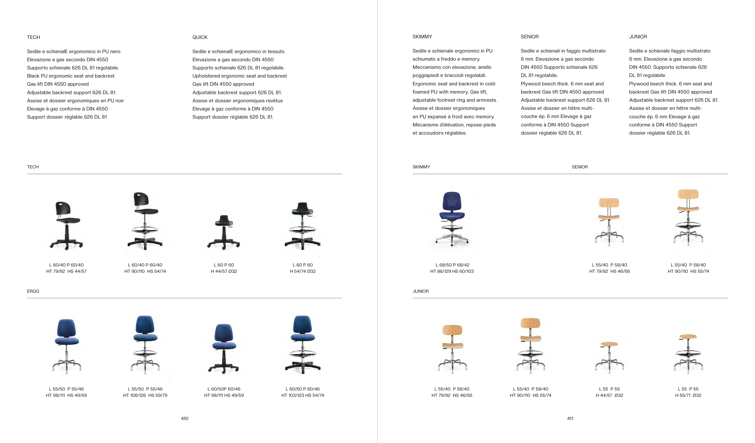 Sedile e schienalE ergonomico in tessuto.