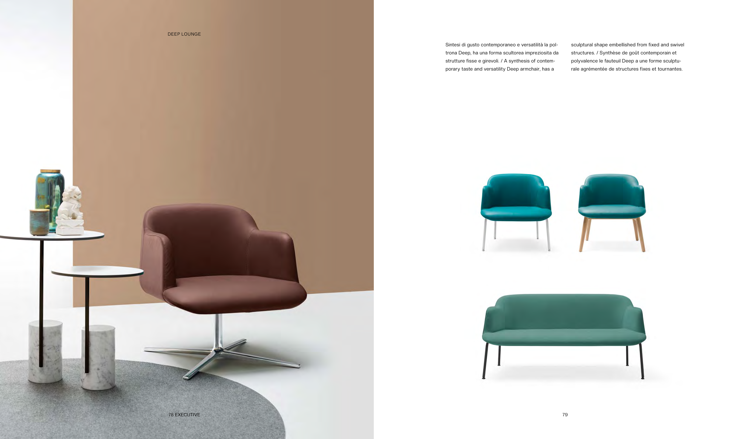 porary taste and versatility Deep armchair, has a