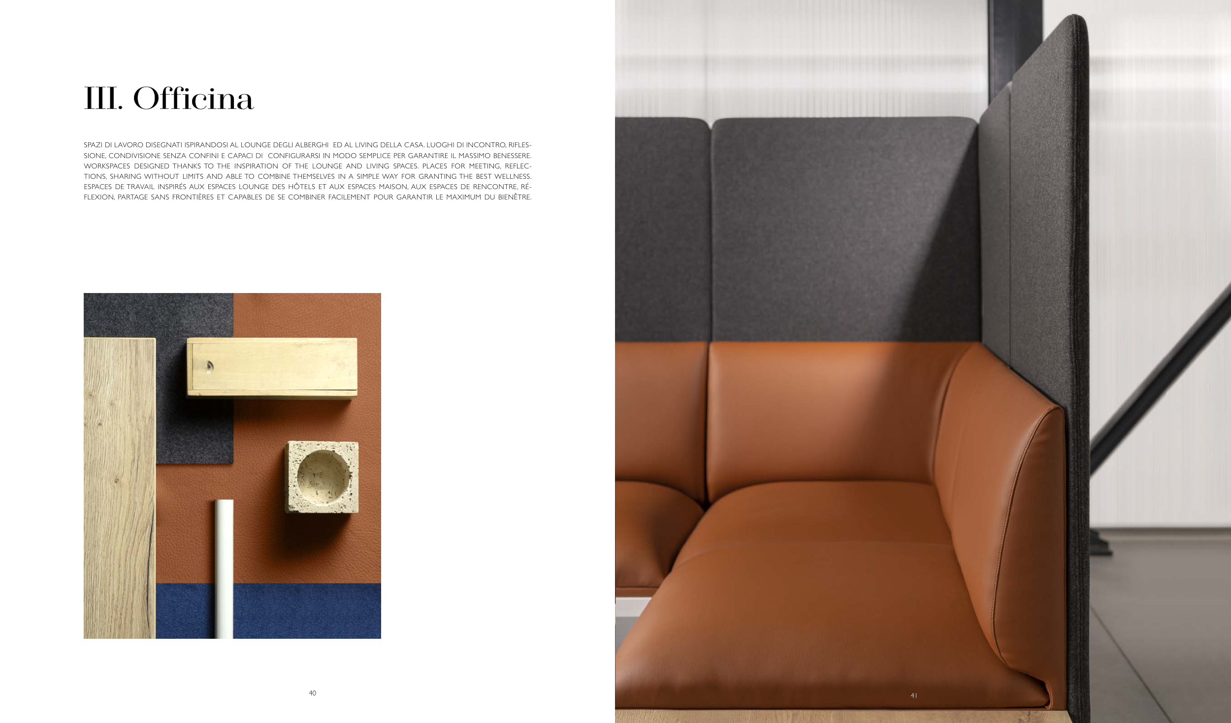 WORKSPACES DESIGNED THANKS TO THE INSPIRATION OF THE LOUNGE AND LIVING SPACES. PLACES FOR MEETING, REFLEC-