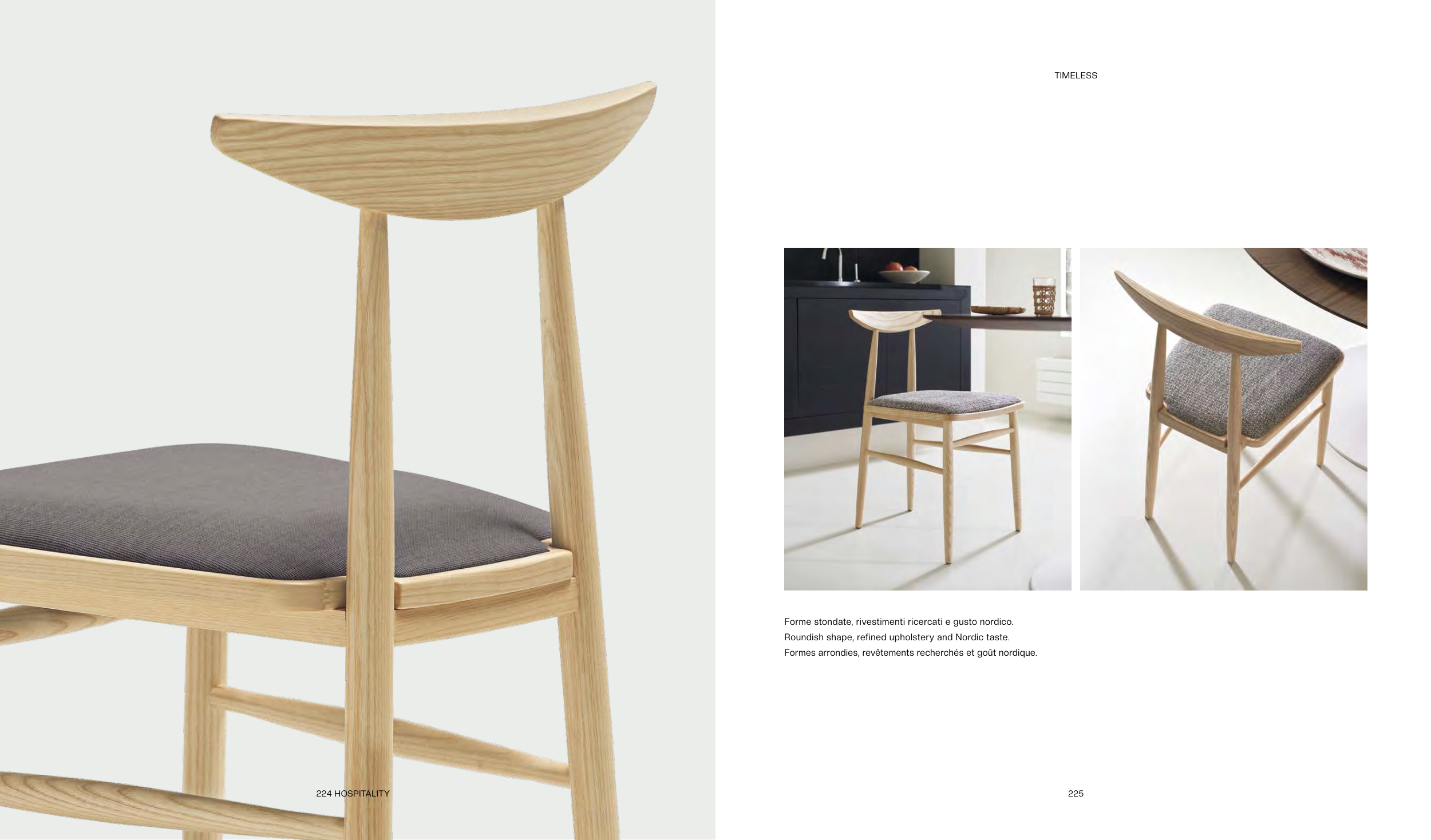 Roundish shape, refined upholstery and Nordic taste.